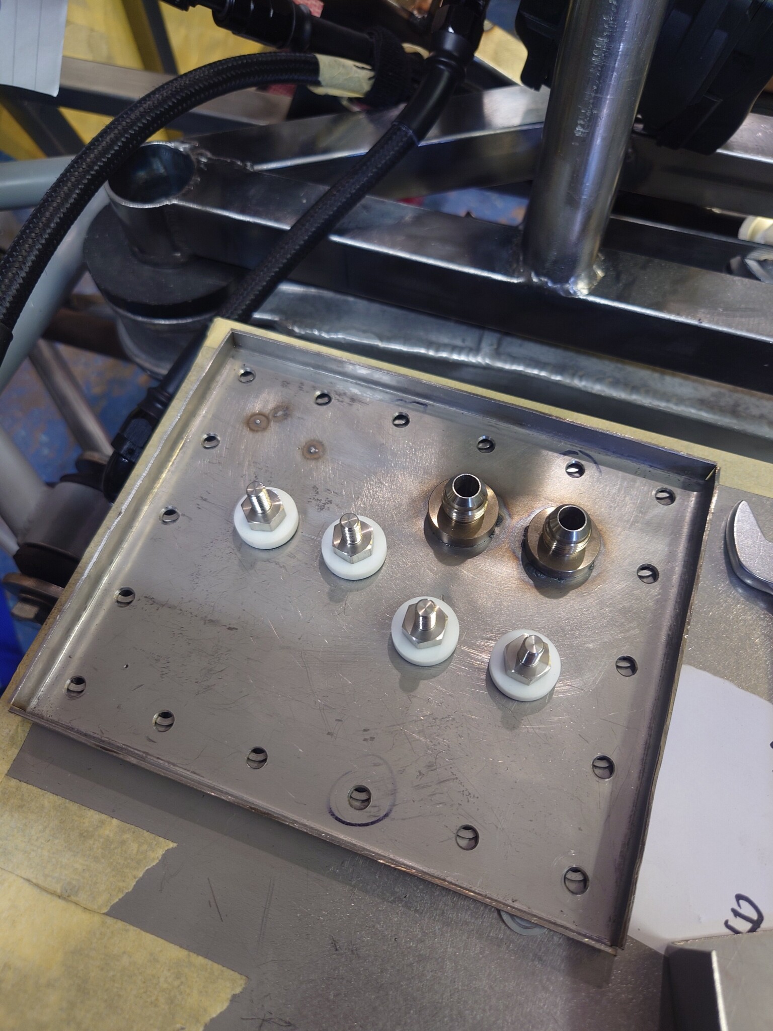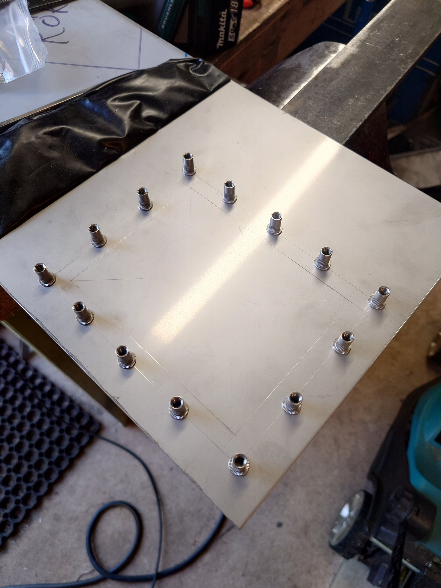 Nu är det bara att svetsa dit två skruvar för givaren och borra 4 hål för genomföringar!