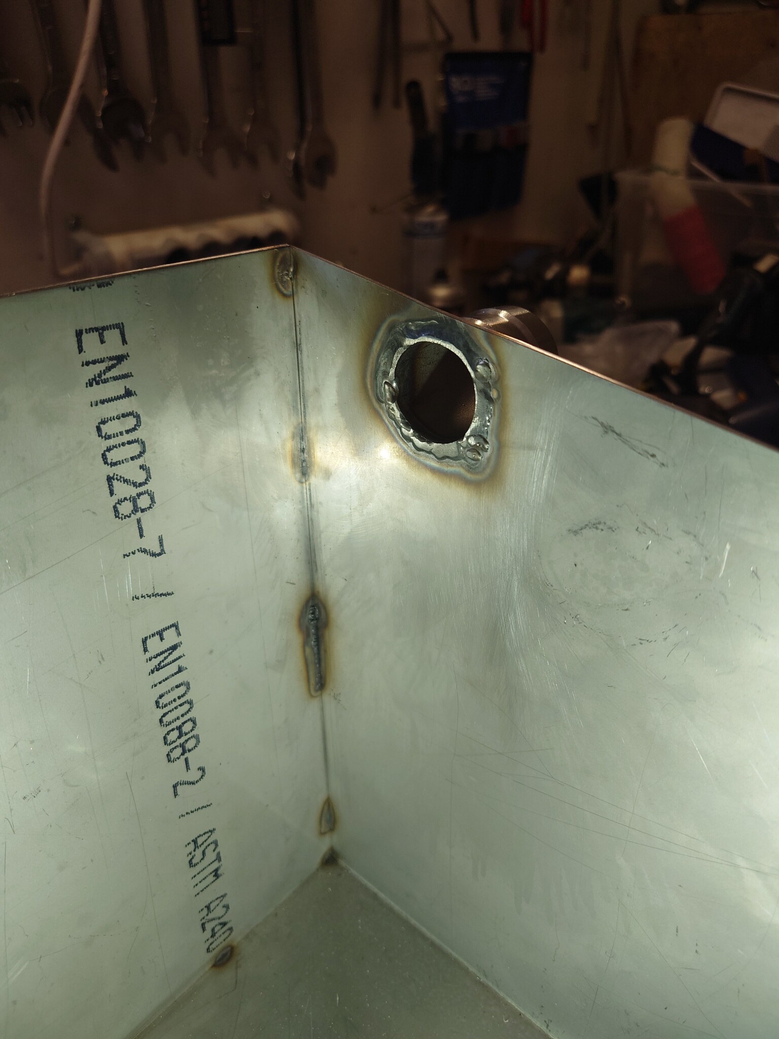 Inte de snyggaste svetsarna, men det gick förvånansvärt bra, för att vara okänd aluminiumplåt (från en skylt) och en svetsare som inte svetsat alu som faktiskt ska bli nått på nästan 30 år...