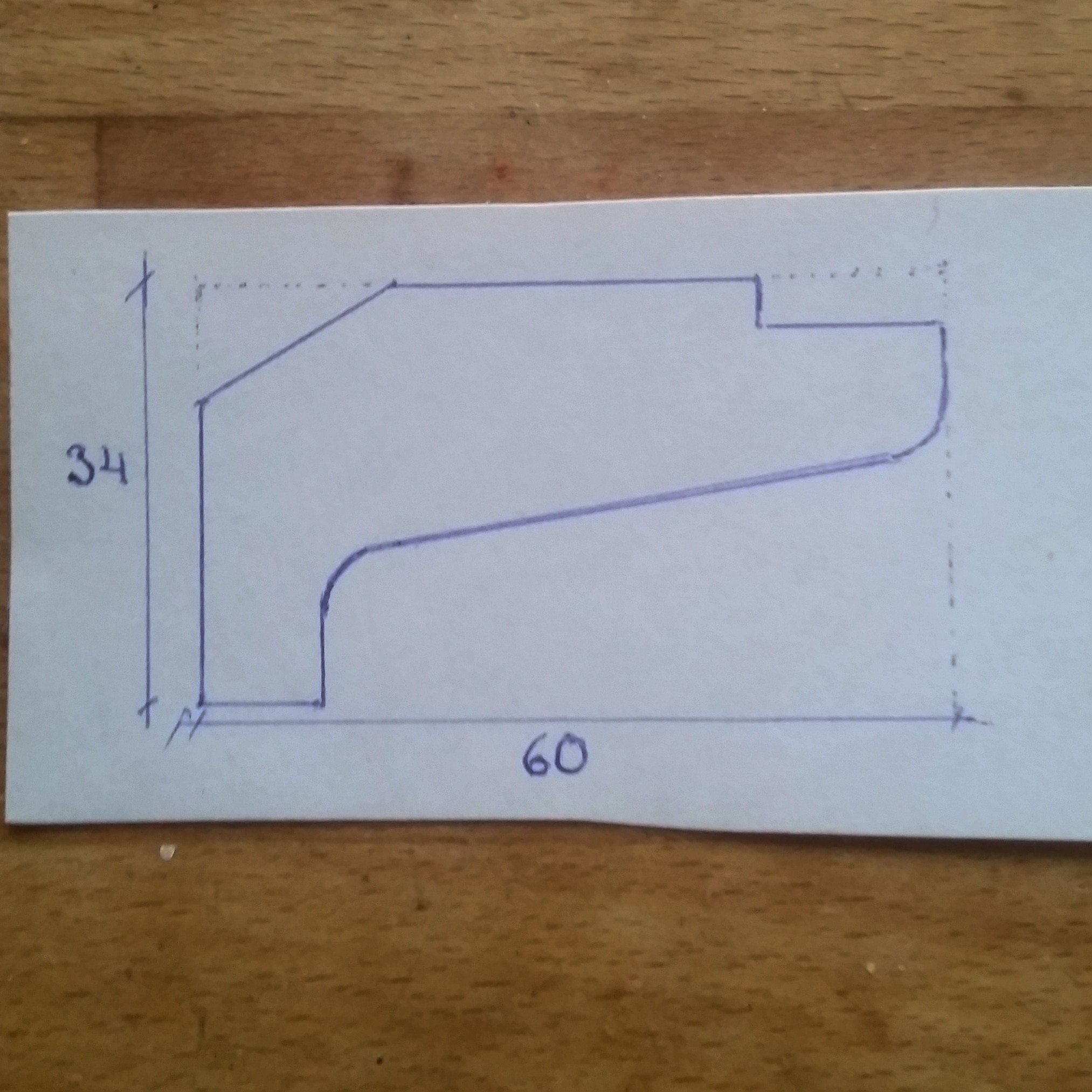 Hm, om du har ett ämne som 60x34 mm ser jag 5 snitt med bordsågen och 2 fräsningar.