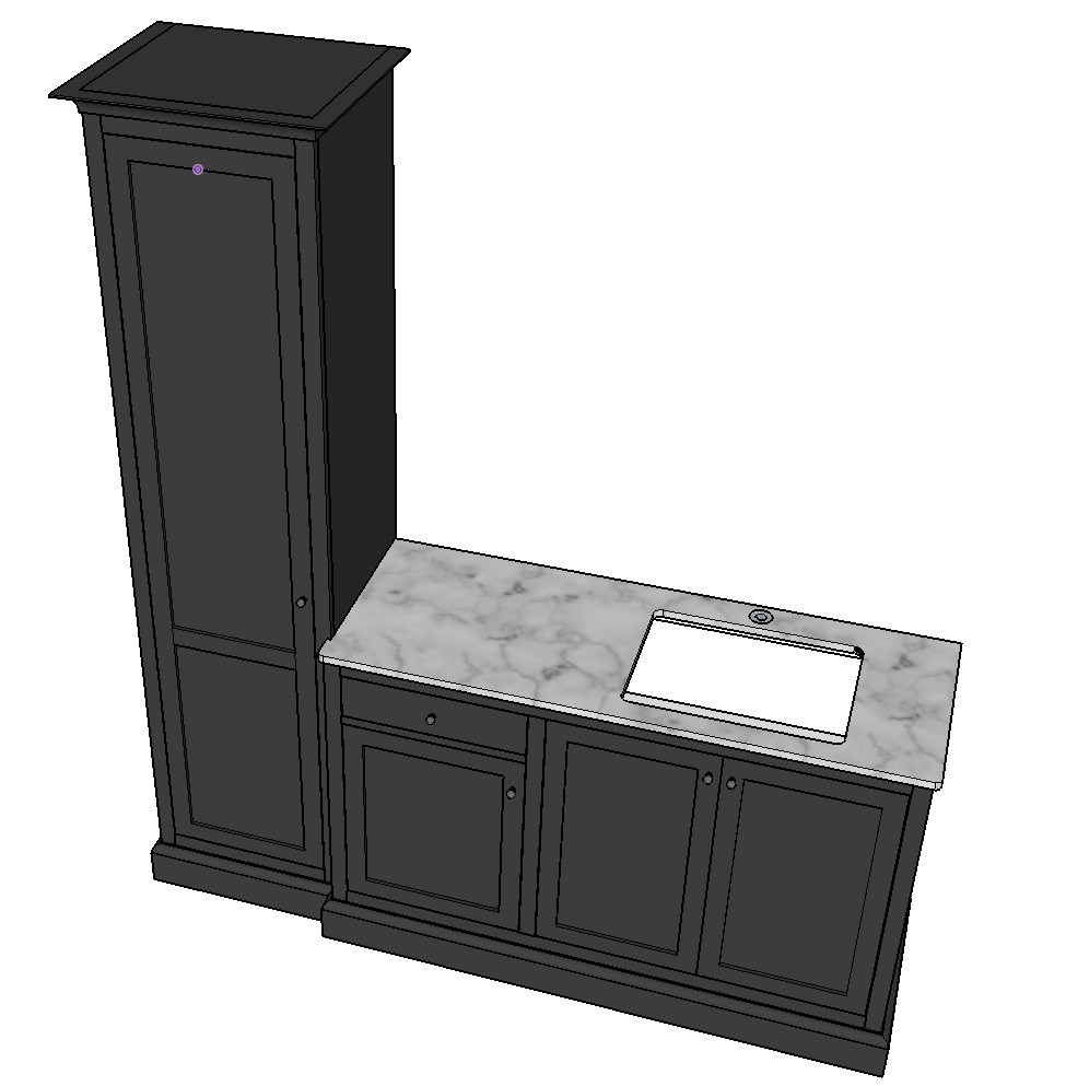 Jag har fått ett pris på 8000 för den här bänkskivan och en skiva som skall täcka den dem inbyggda toaletten. Själva bänkskivan blir 1385x515mm och jag vill ha avrundade hörn och svagt rundad kant i fronten. Det skall dessutom vara ett urtag för ett högskåp till vänster på bänkskivan. Här är en skiss: