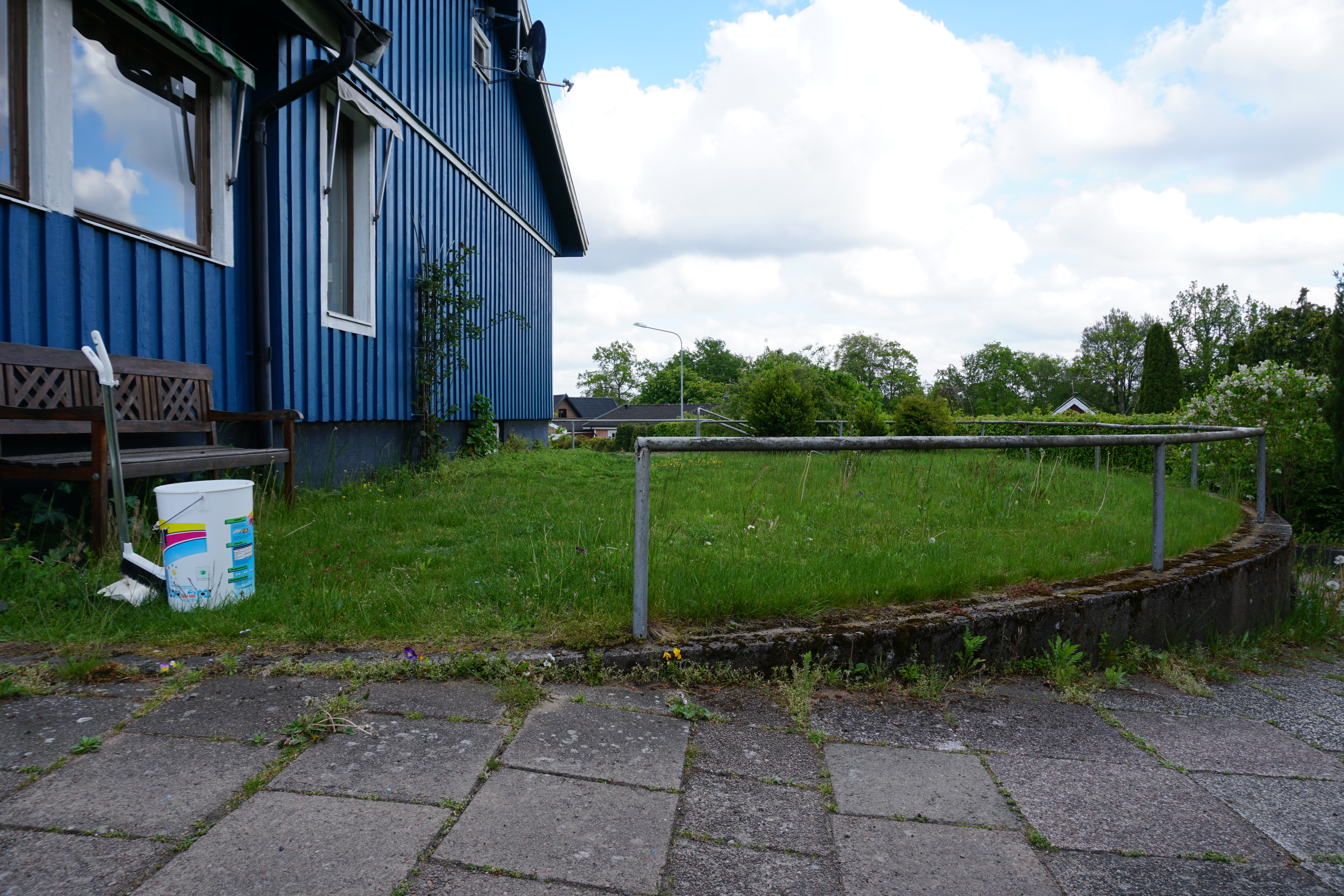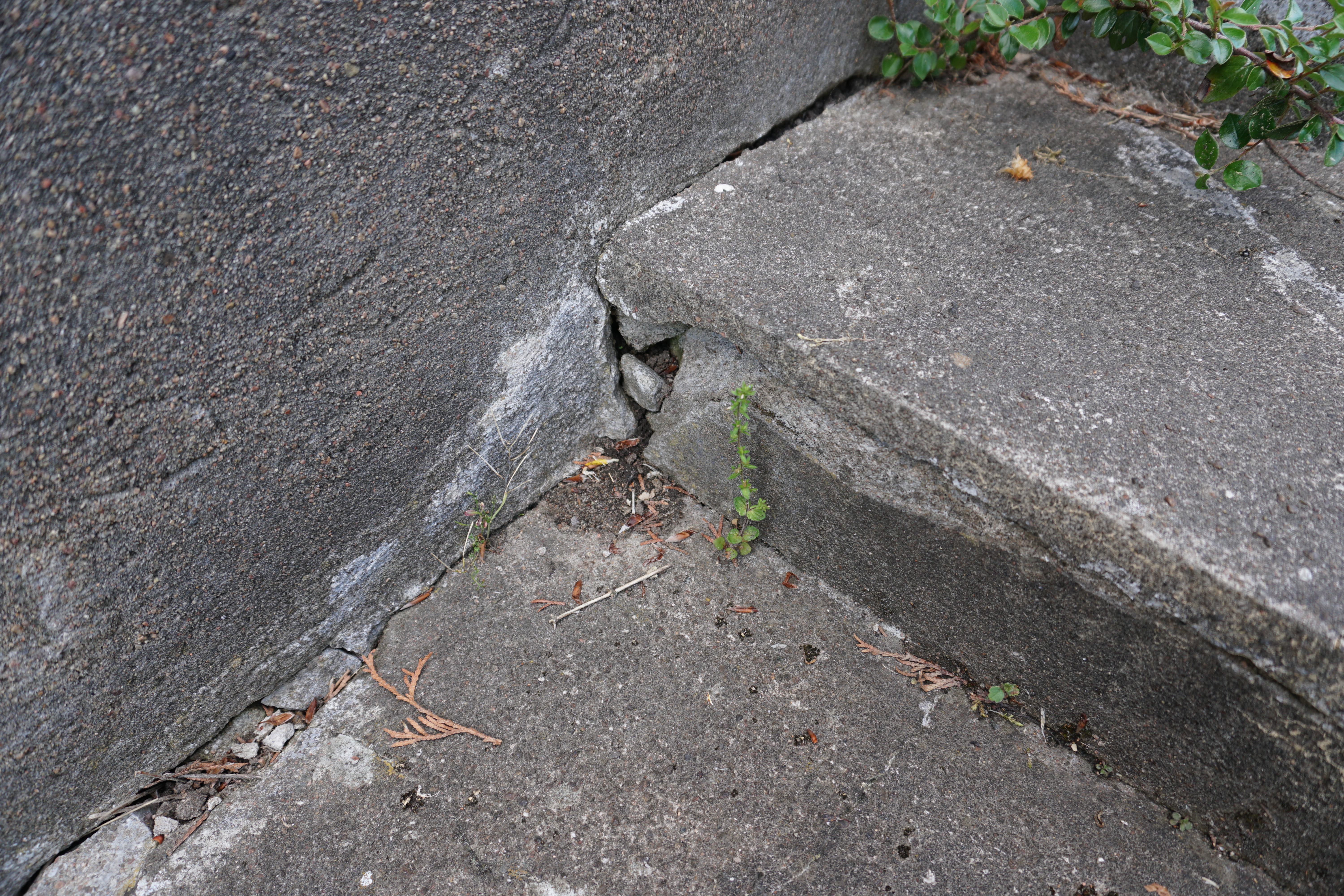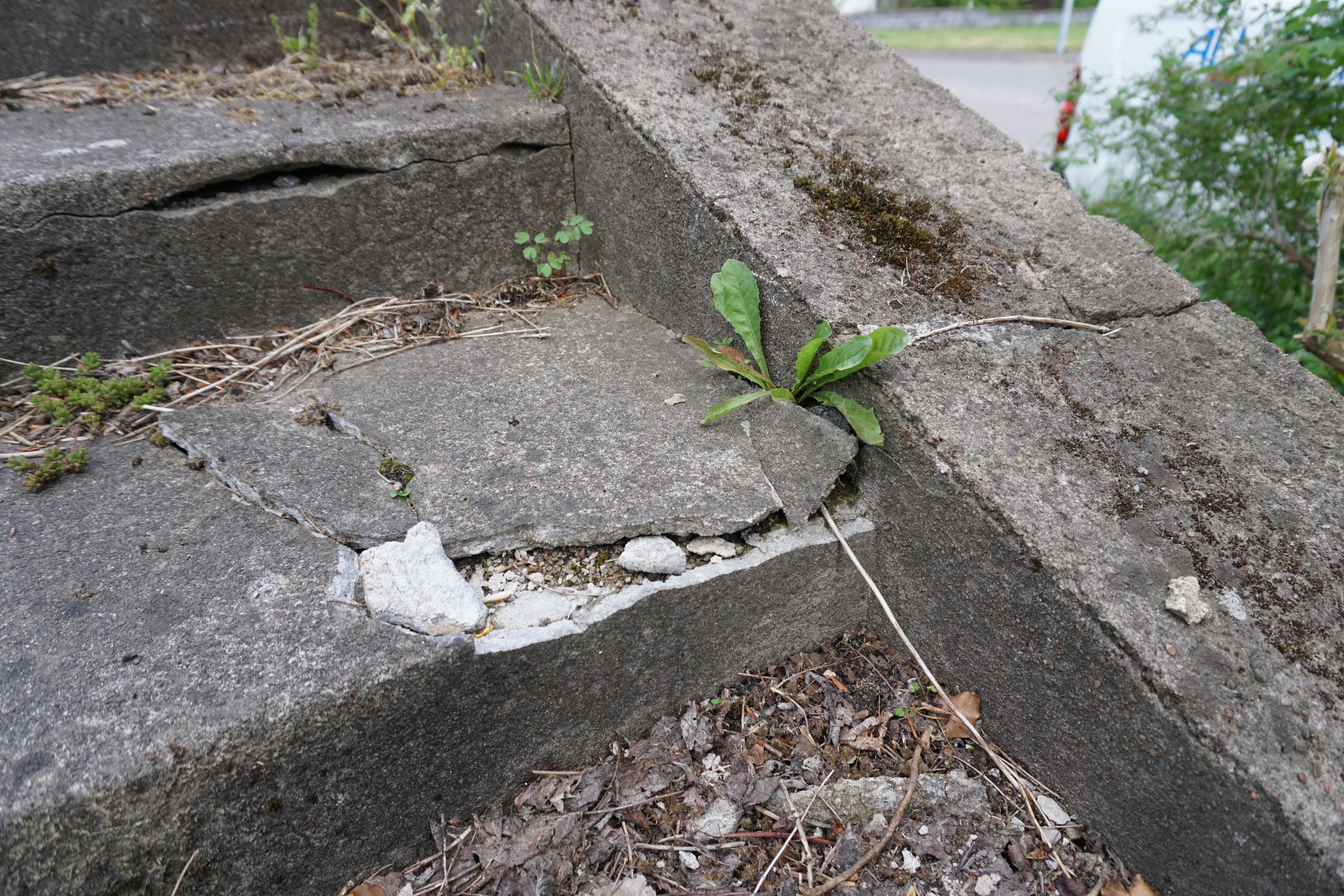 Vi köpte ett hus vid årsskiftet med tanken att renovera det mesta, inklusive en mur och trappa i betong vid uppfarten. Den har varit med sedan huset byggdes 1946 så den är lite sprucken på sina ställen, mycket sprucken på andra ställen och lite växtlighet har trängt igenom och blommar fint i diverse springor