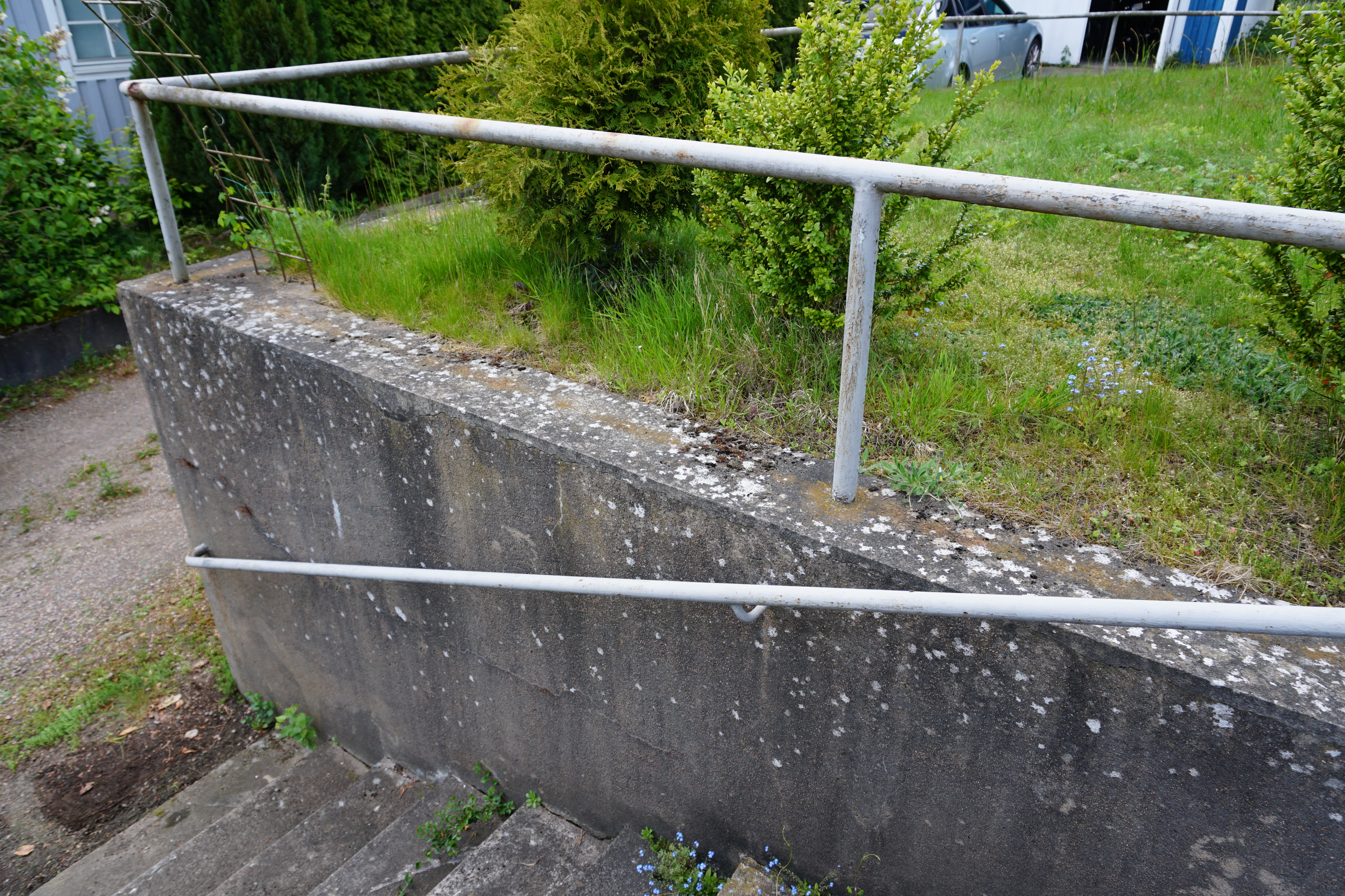 Vad skulle man kunna göra med en så dassig mur och trappa? Börja om från början? Går den att reparera? Är det någon mening att snygga till över huvud taget annat än att riva allt? Jag har läst lite och vad det verkar som så håller inte betongreparationer sådär värst bra, speciellt inte när den är i detta usla skick.