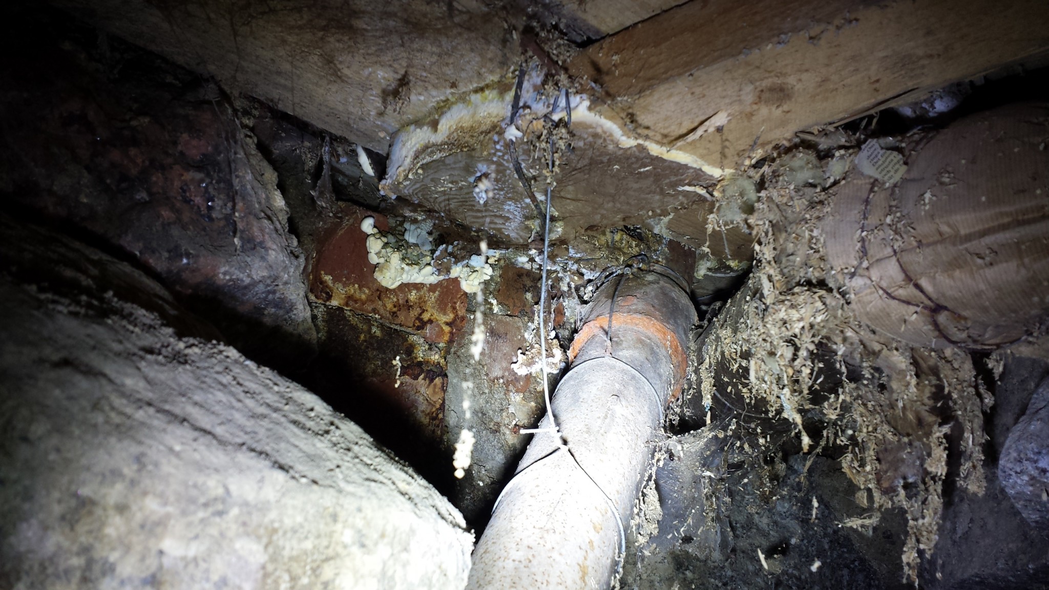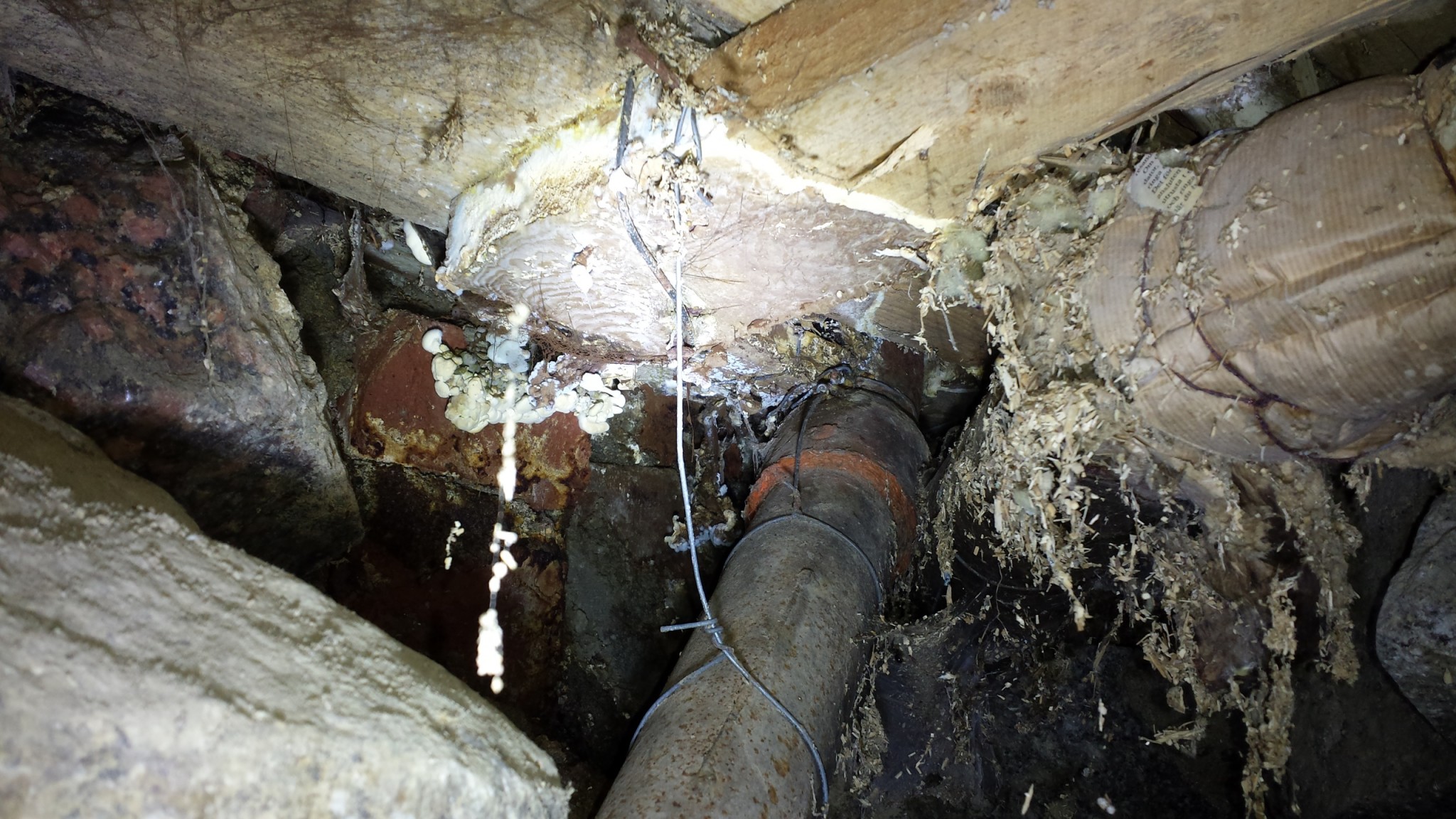 Det man ser på bilden ser inte så illa ut, Men man måste frilägga skarven till de nya rören, och täta, eller troligen dra nytt ialla fall ner genom grunden. Så om den skarven ex. sitter i ett badrumsgolv, så blir det ett stort och dyrt ingrepp. Möjligt att man kommer åt att byta underifrån, men det skall man nog se som bonus i så fall.