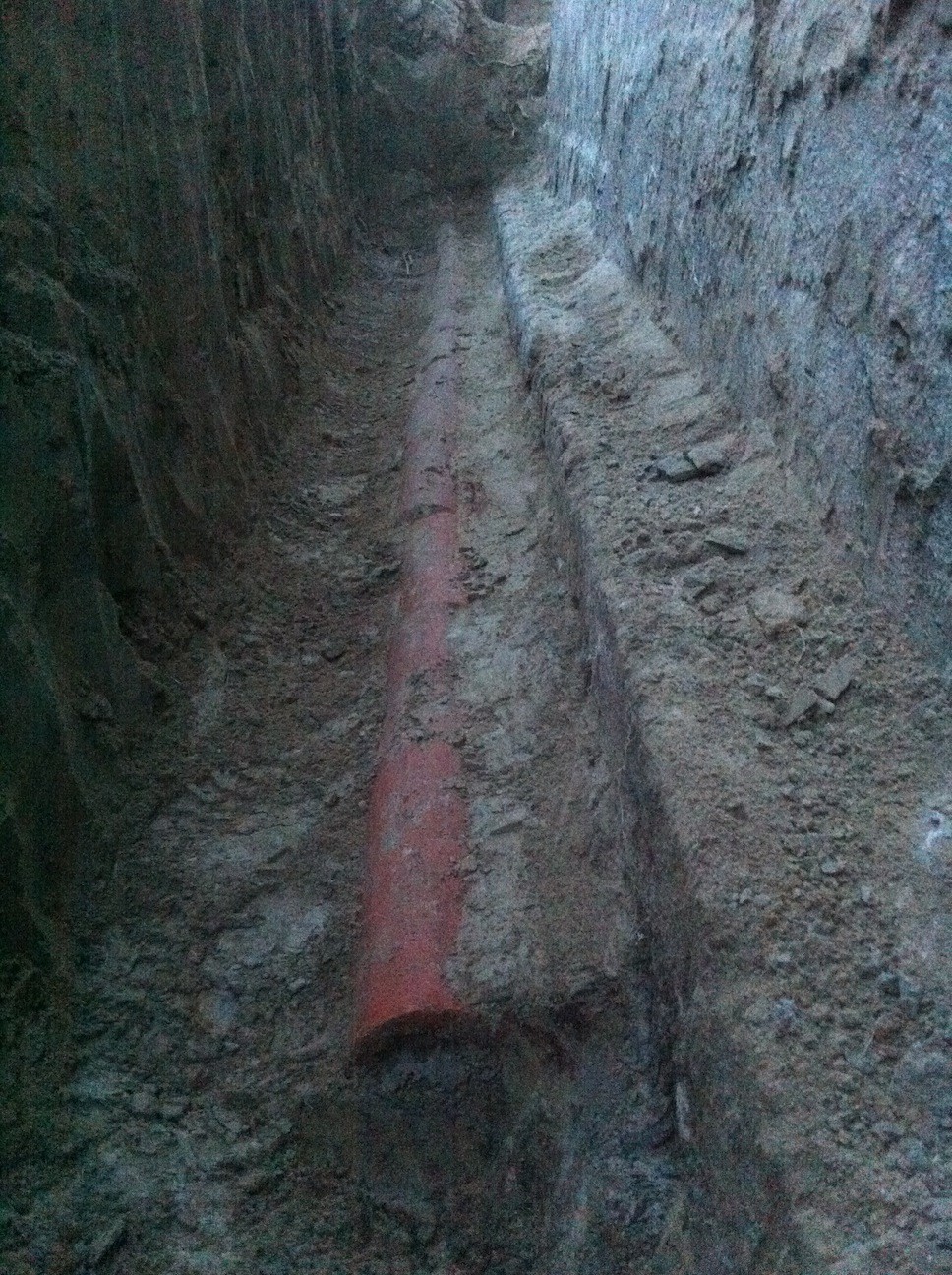 De gamla dräneringsrören som låg vid trapphuset var till skillnad från de längs kortsidan helt rena på insidan, vilket jag tolkar som att varit rätt torrt där de senaste 60 åren.