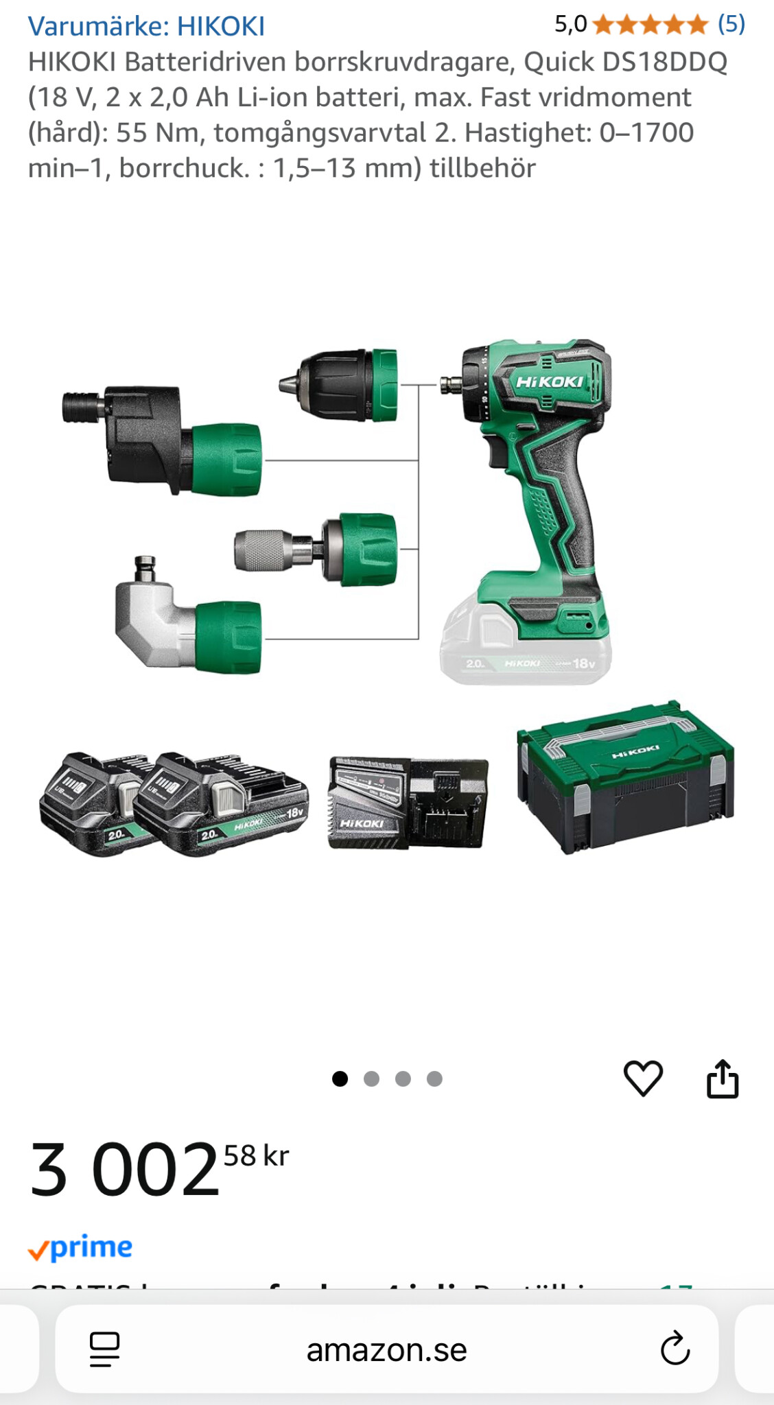 Bästa pris jag sett på Hikokis installationsborrskruvdragare komplett med alla tillbehör.