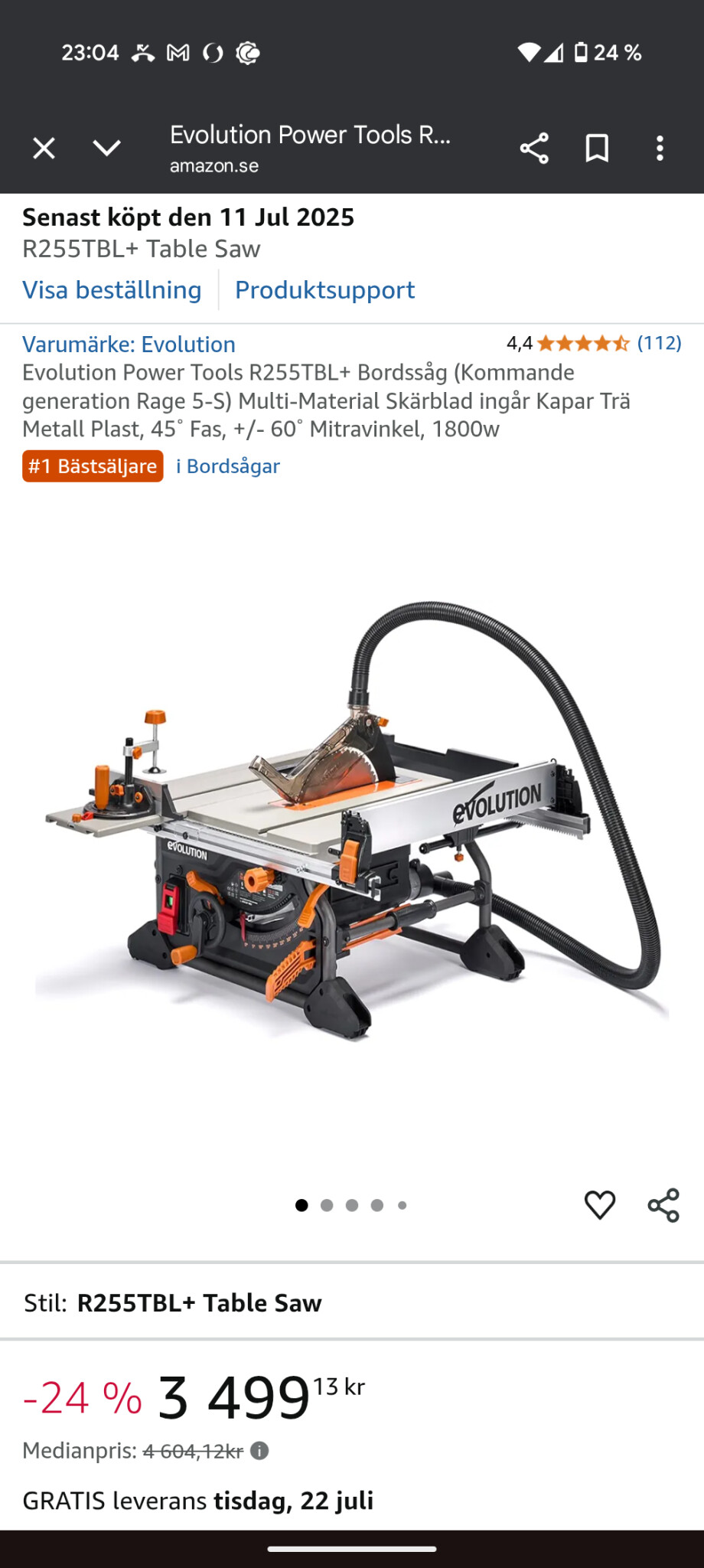 Har en DeWalt 7485 som är bra men har läst väldigt mycket gött om Evolution (förutom klyvkniven som följer med, man får köpa en ny mindre i efterhand), så jag kunde inte säga nej när Amazon sänkte priset med 24% samt gav rabattkod på 100 spänn.