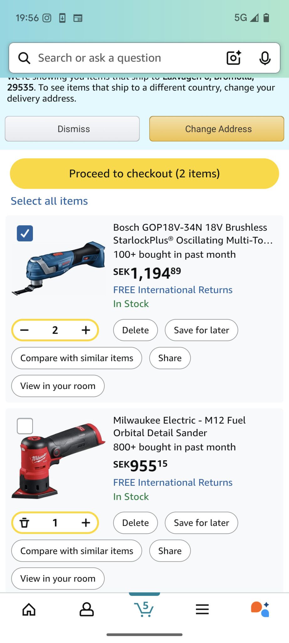 Tack för svar! Skulle kunna löna sig. Brukar vara bra rabatter på flera verktyg där borta.C ConnyK skrev:Jag har beställt från Amazon USA och det var från Amazonlagret i USA (misstänker att det kan bli annat om det skickas från annan).