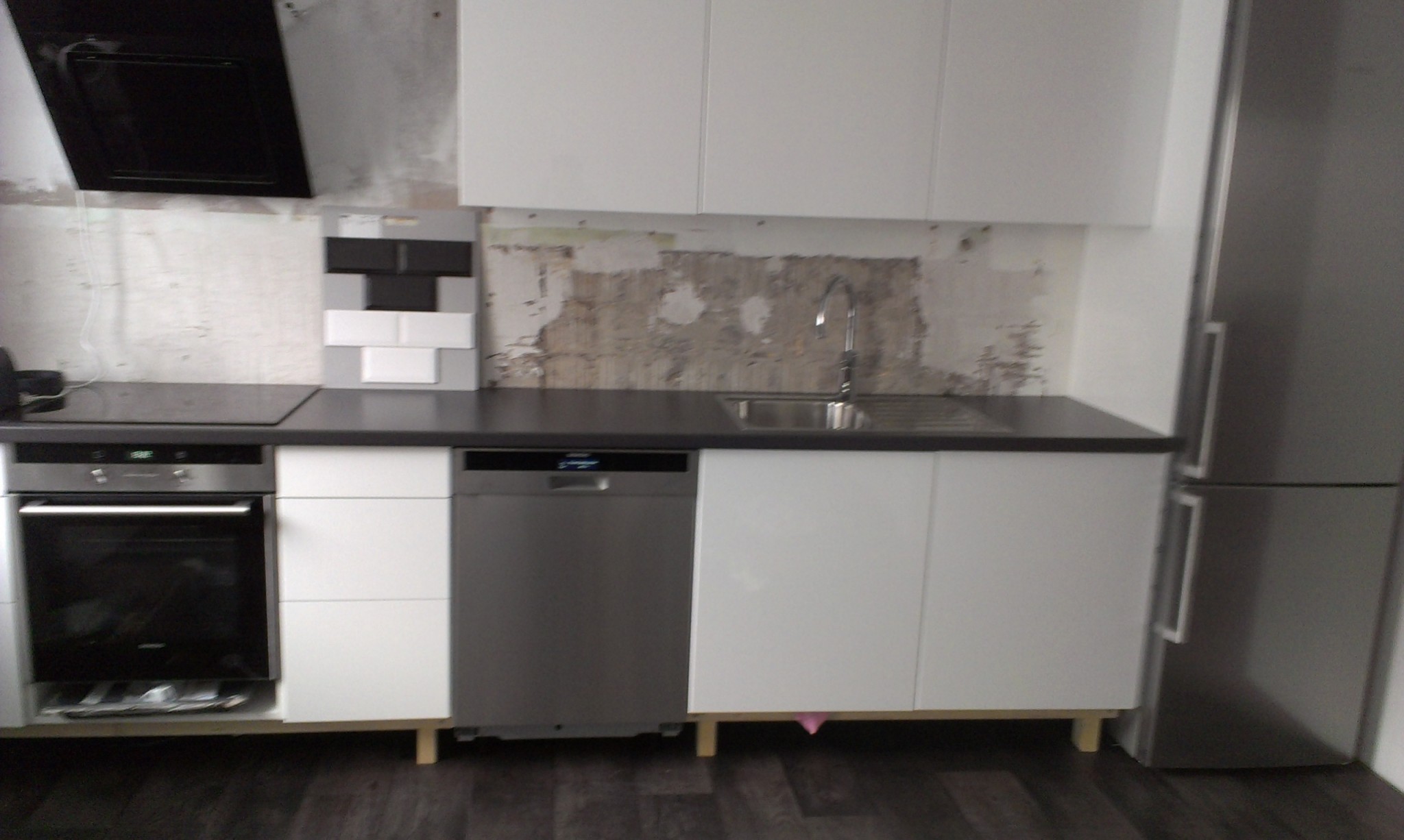 Har Ikea abstrakt högglans vit med deras stenmönstrade bänkskiva... Ja ni ser själva