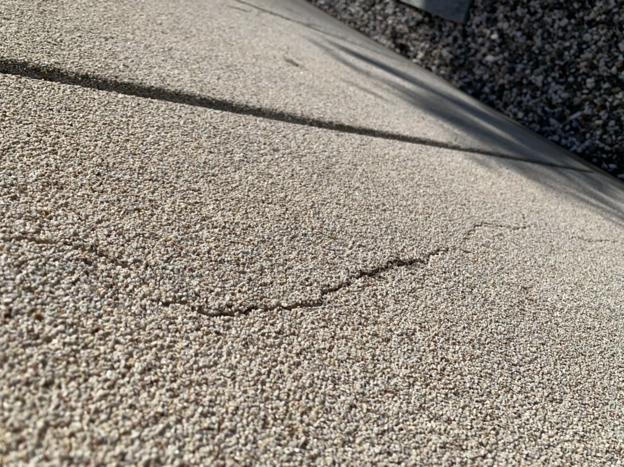 Det finns en hel del skador, sprickor och färgen (tonen) har på vissa delar blivit solblekt eller är smutsig.