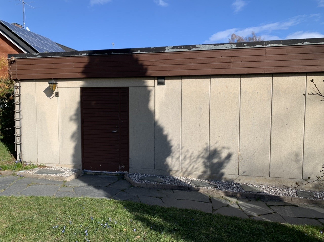 Har ett hus och ett garage som är beklätt med något stenliknande skiv-material. Se bilder nedan från garaget. Hus och garage är från 68.