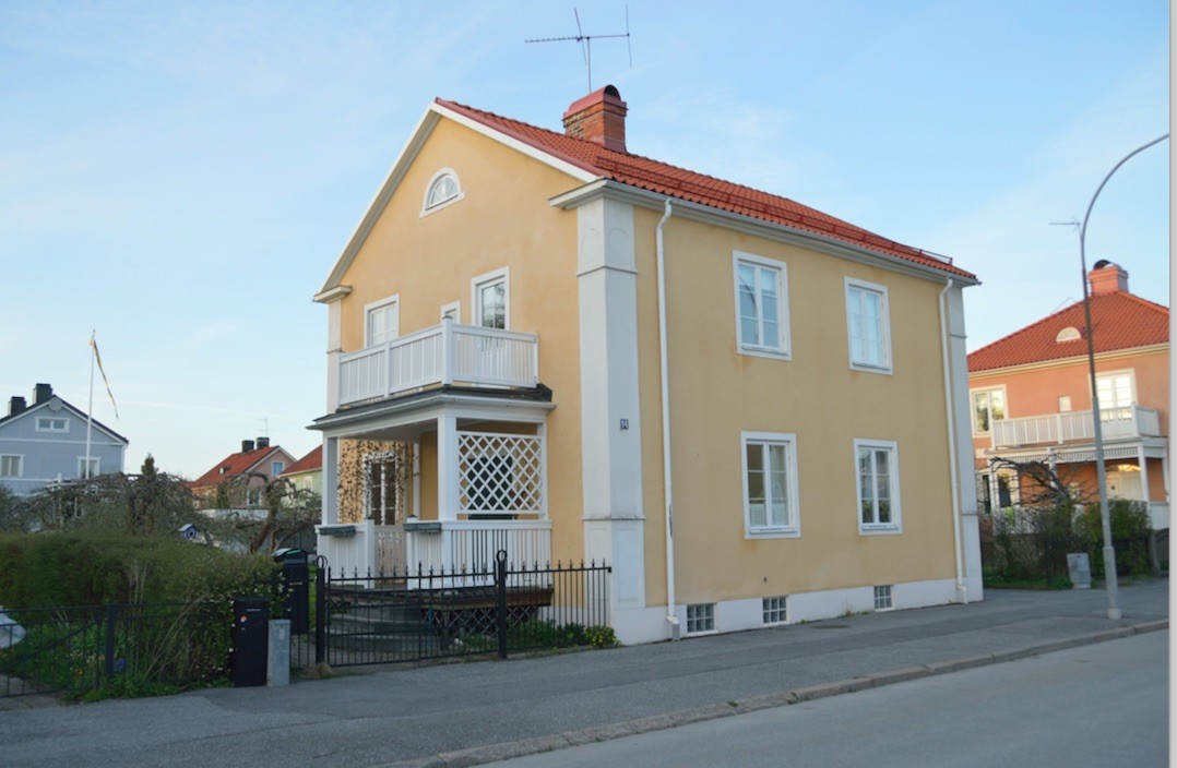 Huset som entrén ska byggas på är ett 20-talshus med murade foder kring fönstren och spröjs.