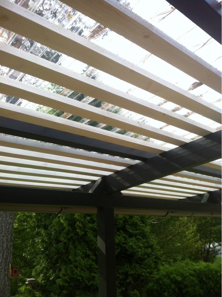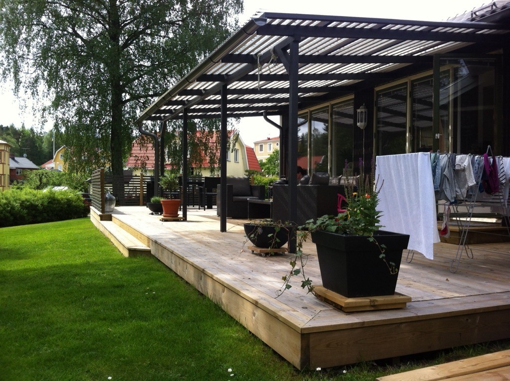 Tackar! Hälften plintar i jord å hälften plintar mot berg. Tak är ett vanligt kanalplast men vi har satt ribbor för att få lite skugga. Här är ngr bilder till!