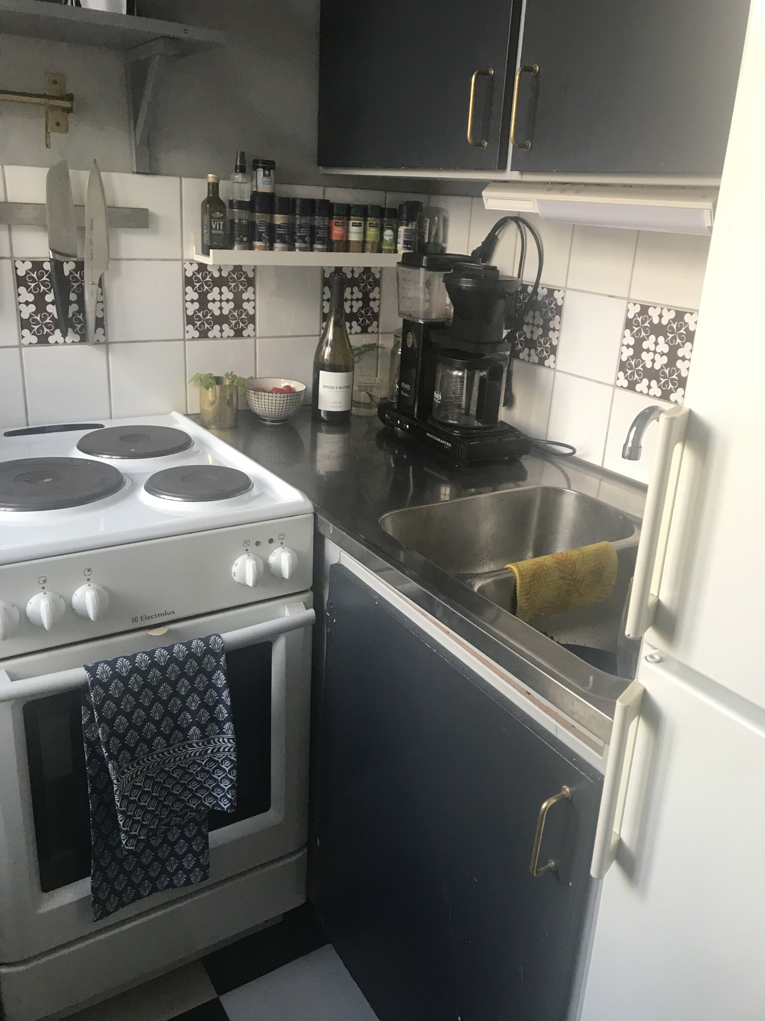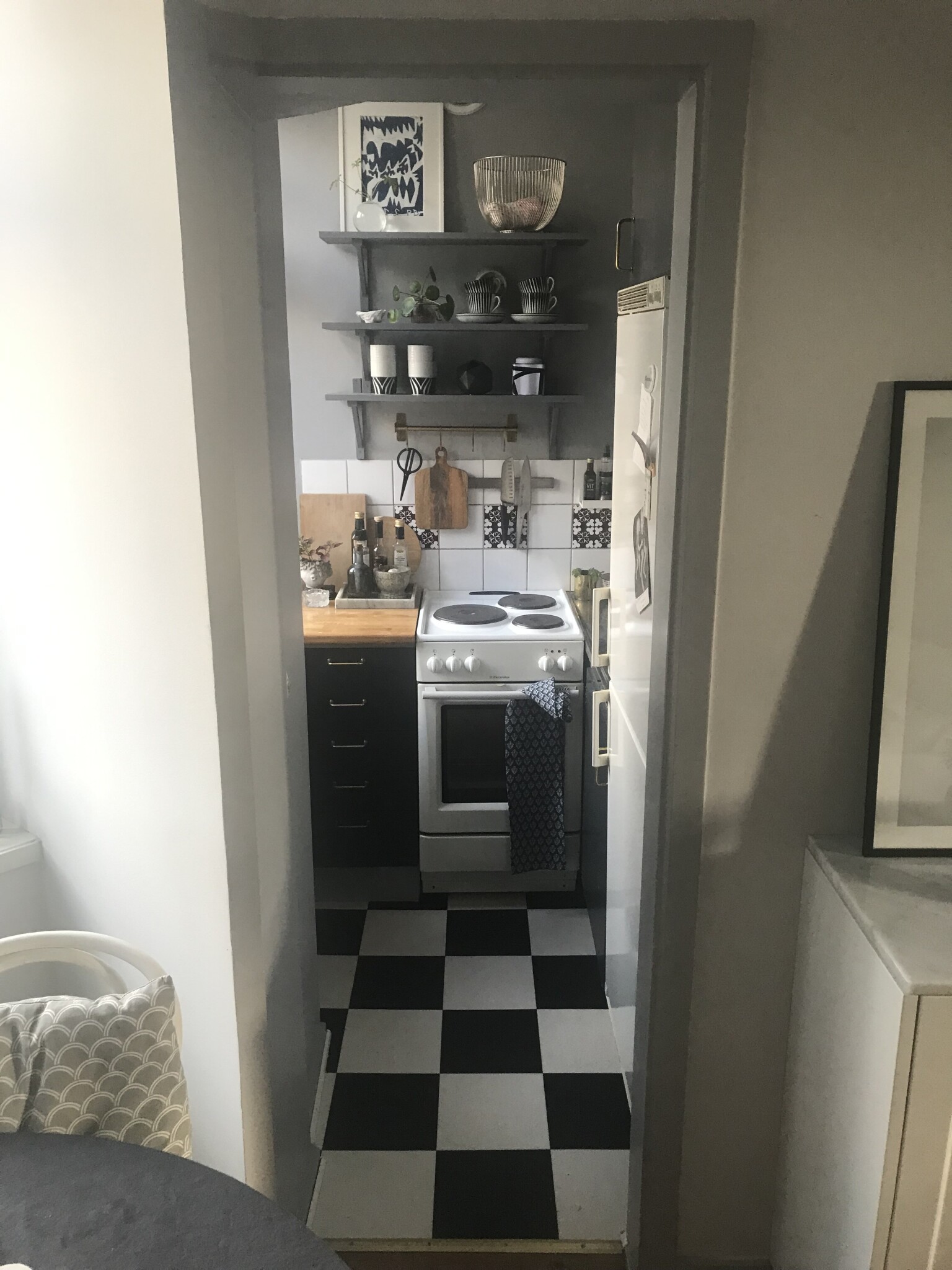 Det är ett fint men numer ytterst slitet kök, vilket ej syns på bilder.C Chrzan skrev:Varför ska du riva ut det? Är detta ett funkiskök med platsbyggda trästommar och massiva överfalsade luckor, så lär du inte få bättre kvalitet, med mindre än att du specialbeställer ett svindyrt snickarbyggt. Ingen modern diskbänk blir heller bättre och mer praktisk än din fina rostfria, förmodligen av tjockare rejälare plåt än en nyköpt. Luckhandtagen är funkis-klassiker. Det rutiga golvet likaså.