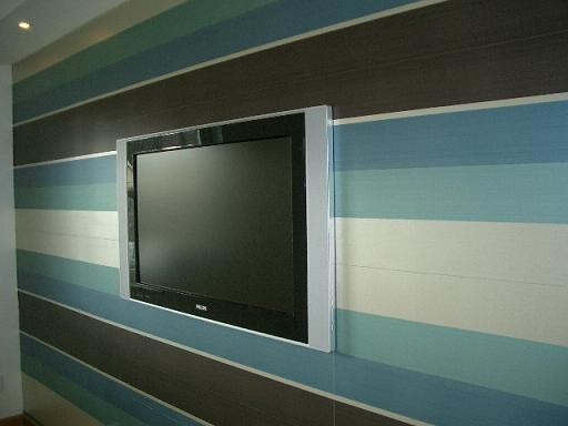 Färgerna gjorde att man nästan inte såg TV:n jag tycker det är fräckt att ni vågar, risken finns väl dock att ni blir trötta i ögonen för att a: det händer mycket på väggen b: det händer mycket på TV:n men det där vet man juf örst när man bott in sig.