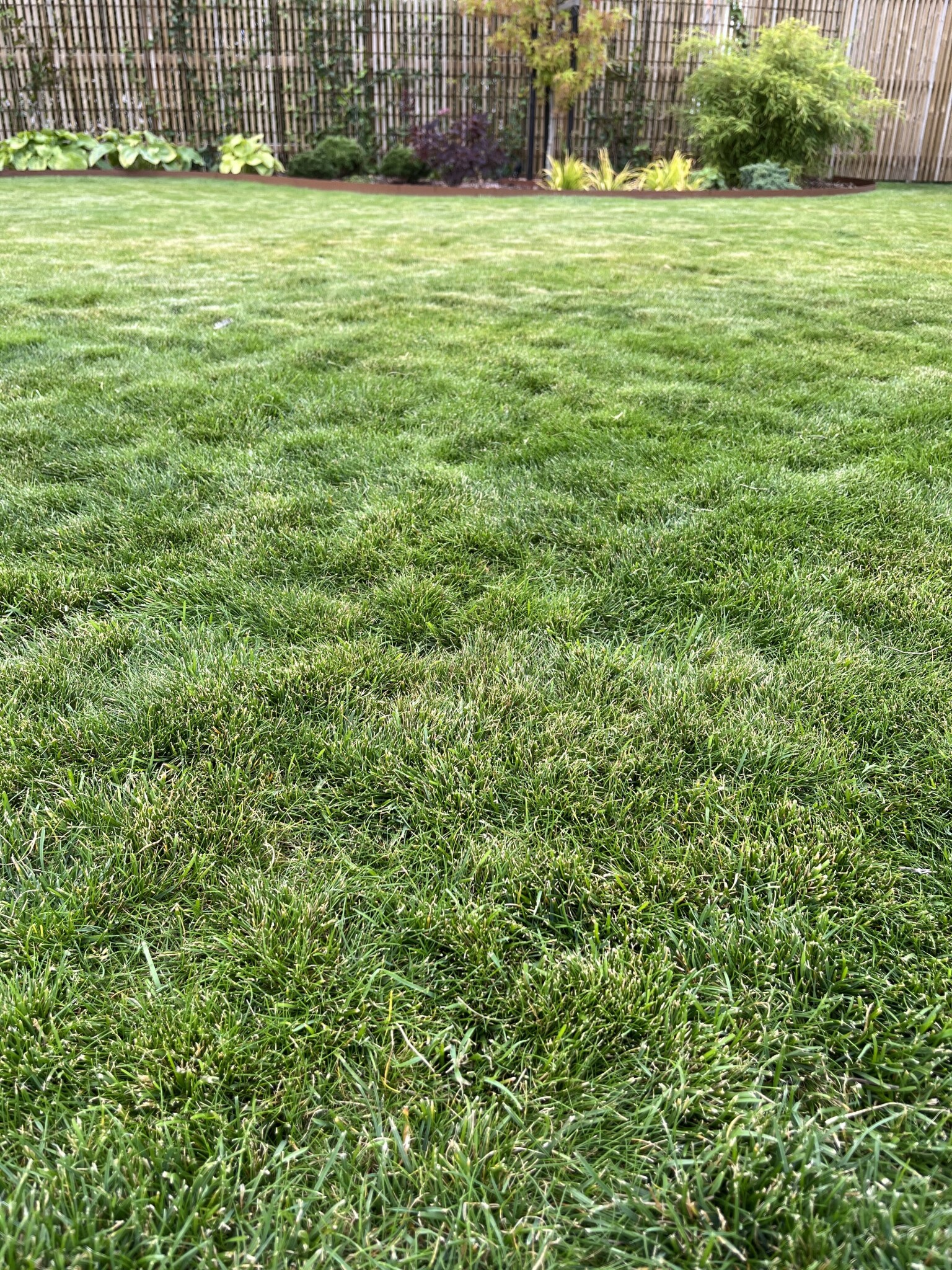 Tagit sig fint. Gödslat och vattnat och den har blivit tät, men tuvig! Ser ut som små kullar över hela gräsmattan.