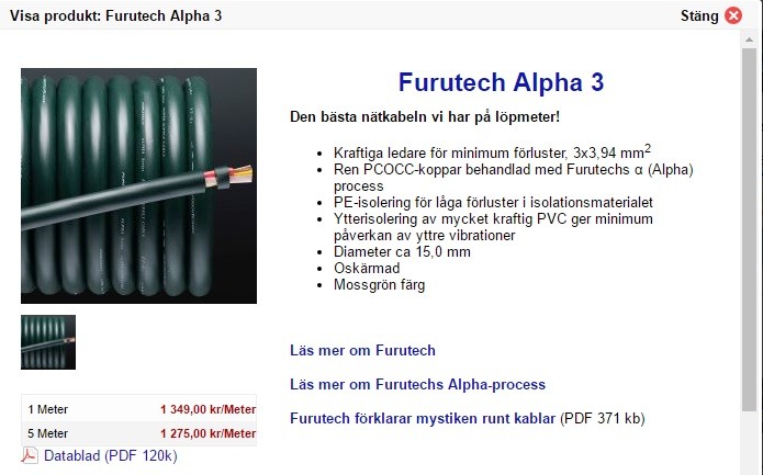 Det ser ju ut att vara en USA kabel, sätter du dit en reseadapter så sabbar du ju egenskaperna totalt... Och så är den troligen "avstämd" för 60Hz, det blir ju helt fel här där vi har 50Hz.
