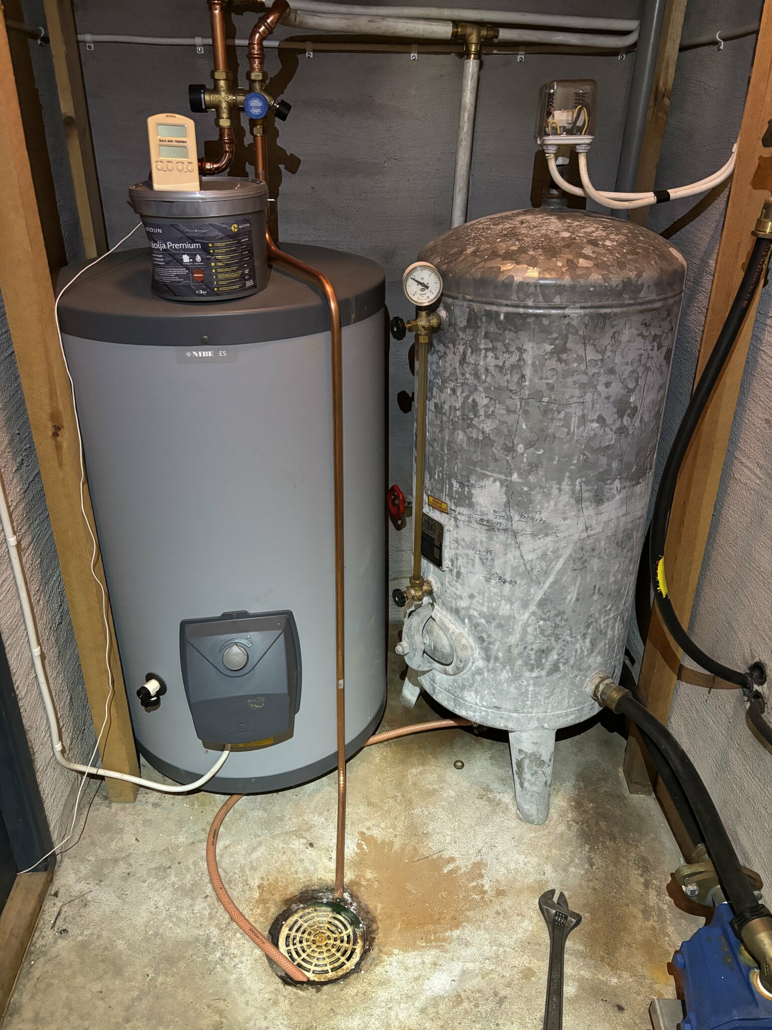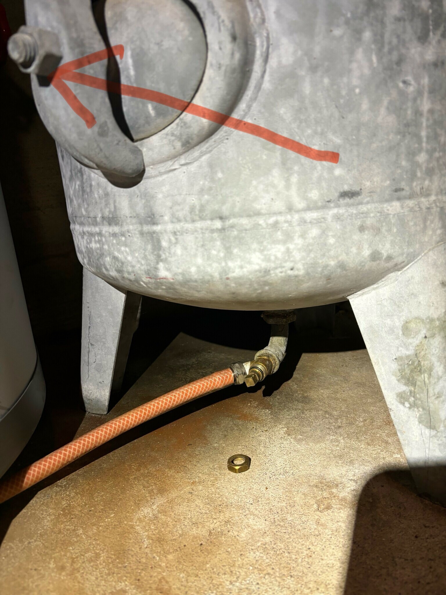 Kontentan är att efter att ha öppnat ventilen nertill i botten så kommer det inte mer än ett par droppar vatten. Pumpen avstängt och stängt de två ventilerna vid ”vattenröret” - Jag missar något, eller hur?