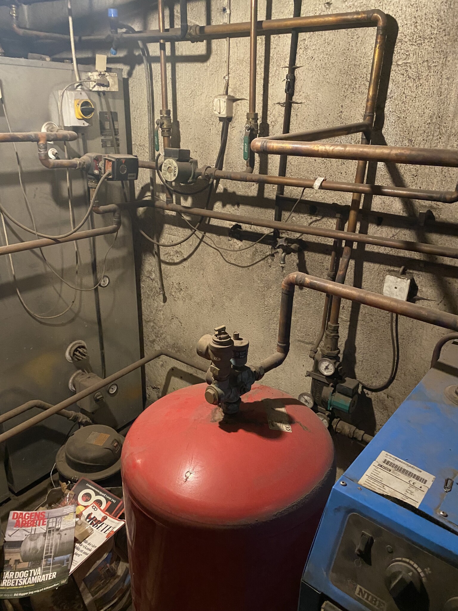 Hej. Jag har lite problem med mitt expansionskärl. Har aldrig under mina 12 år i huset fyllt luft i kärlet men vatten har jag fyllt på. Nu har trycket börjat bete sig märkligt, vid kall panna och inte eldat på en dag så är pannans tryck 0 och kärlet 0. Men vid eldning går trycket upp mot 1,5 bar i Både panna och kärl efter ca tre timmar eldning. Skulle nu vilja ”börja om” och fylla luft i kärlet följt av vatten. Kärlet är helt vad jag tror, när jag pös på ventilen under kom inget vatten. Däremot hörde jag bubblande av vatten i kärlet om de spelar roll. Men skulle ju behöva tömma det på vatten först för att sedan börja om? Har jag förstått rätt då? Men vet inte hur eller vart jag tappar ut vatten… finns ingenstans på kärlet vad jag kan se eller någon annanstans. Bifogar lite gamla bilder jag har.