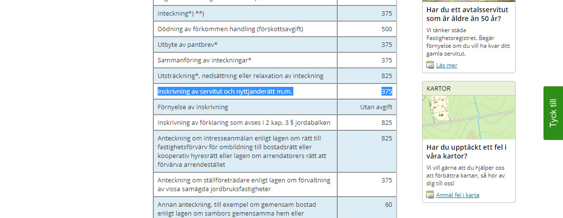 @Emil Karlsson skriver att inskrivning av ett avtalsservitut kostar 900 kr. Verkligheten är ännu bättre, för det kostar bara 375 kr.