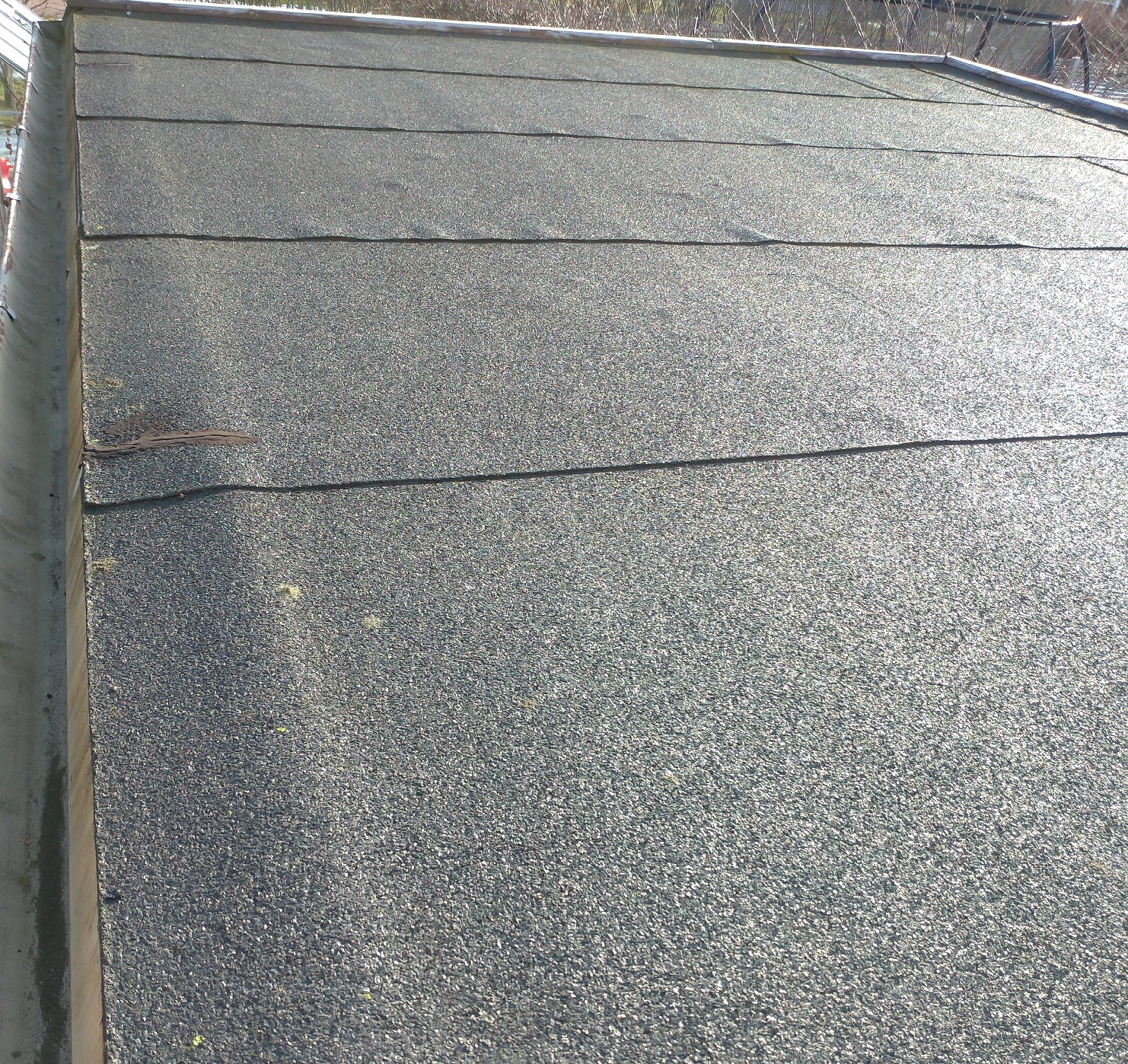 Har ett garage med låglutande tak, tjärpapp från 1976. Nu har det spruckit på några ställen på låga delen och på i alla fall ett ställe har det läckt in. Garaget är oisolerat så det var ju tur då man kunde se det rinna...