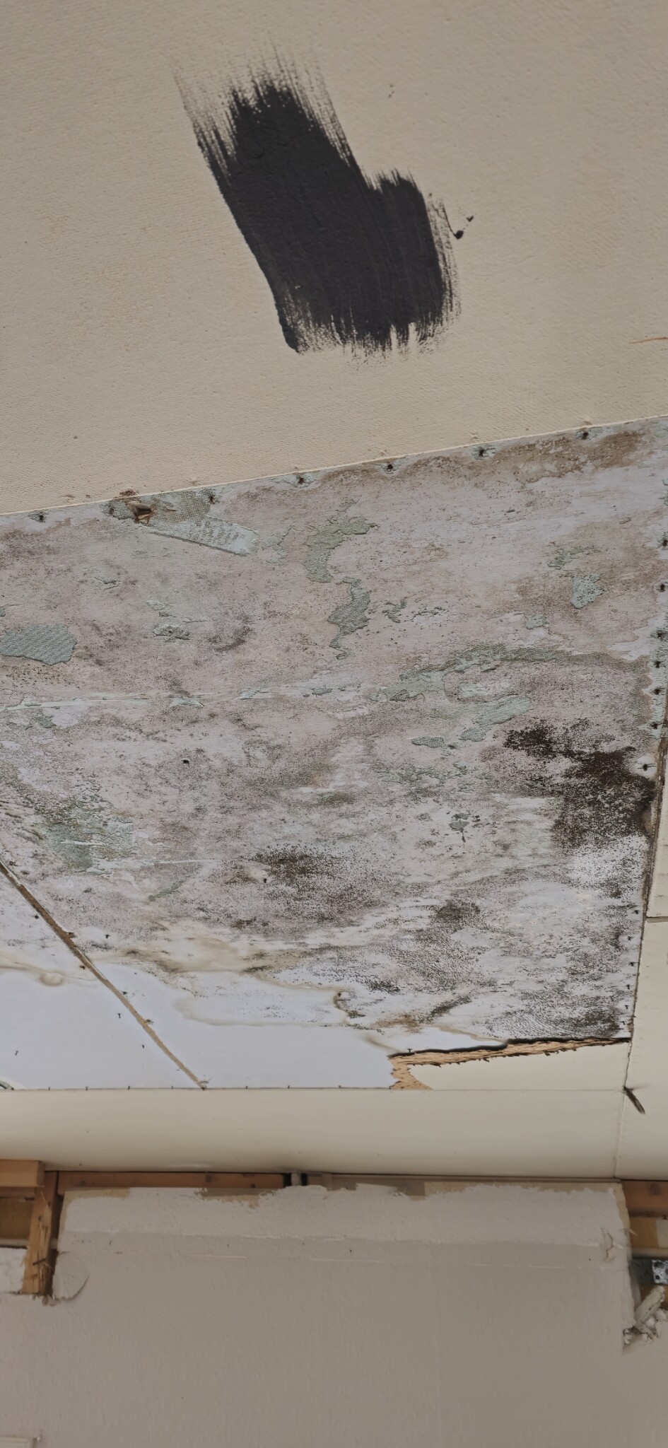 Jag hade nog rivit, inte p g a rädsla för mögel, utan för att se hur det ser ut ovanför den mögliga skivan.