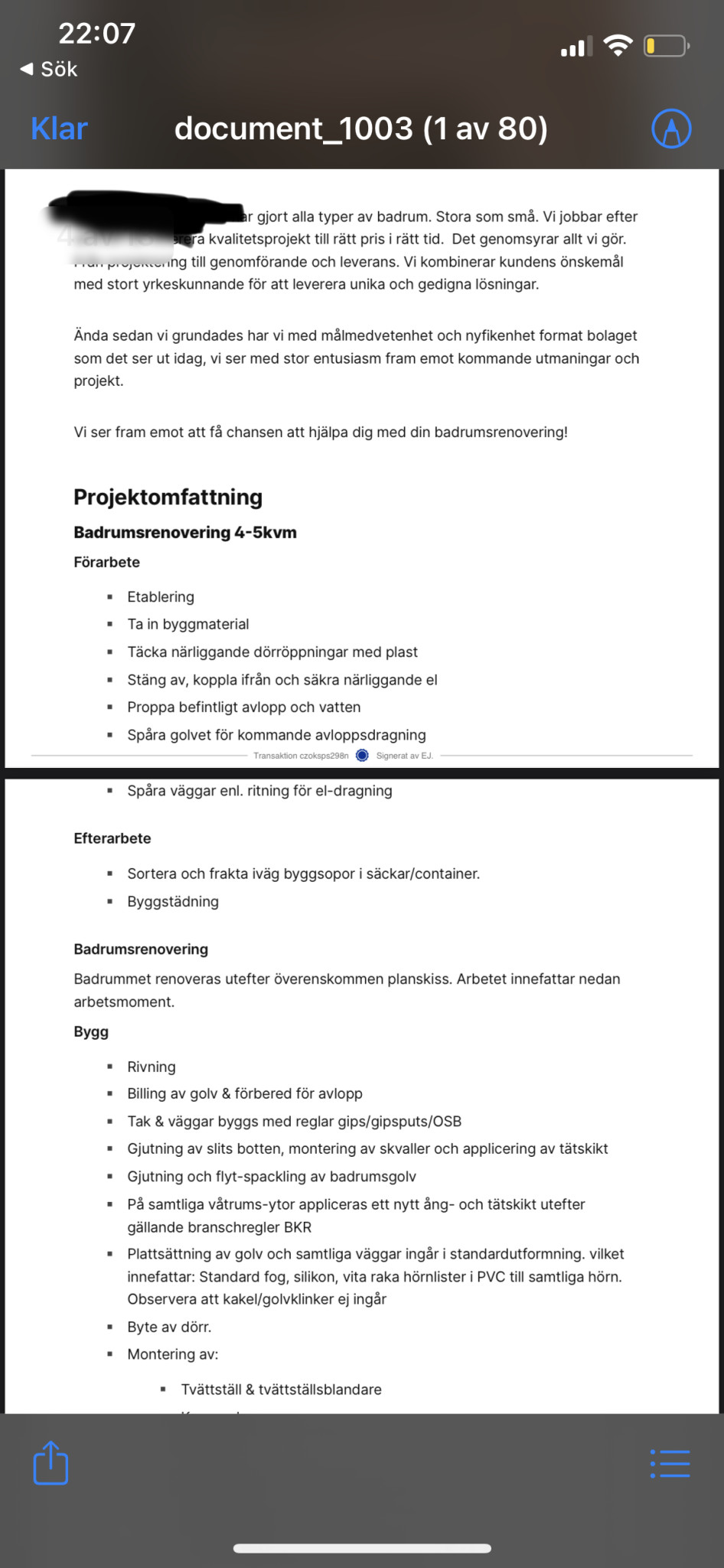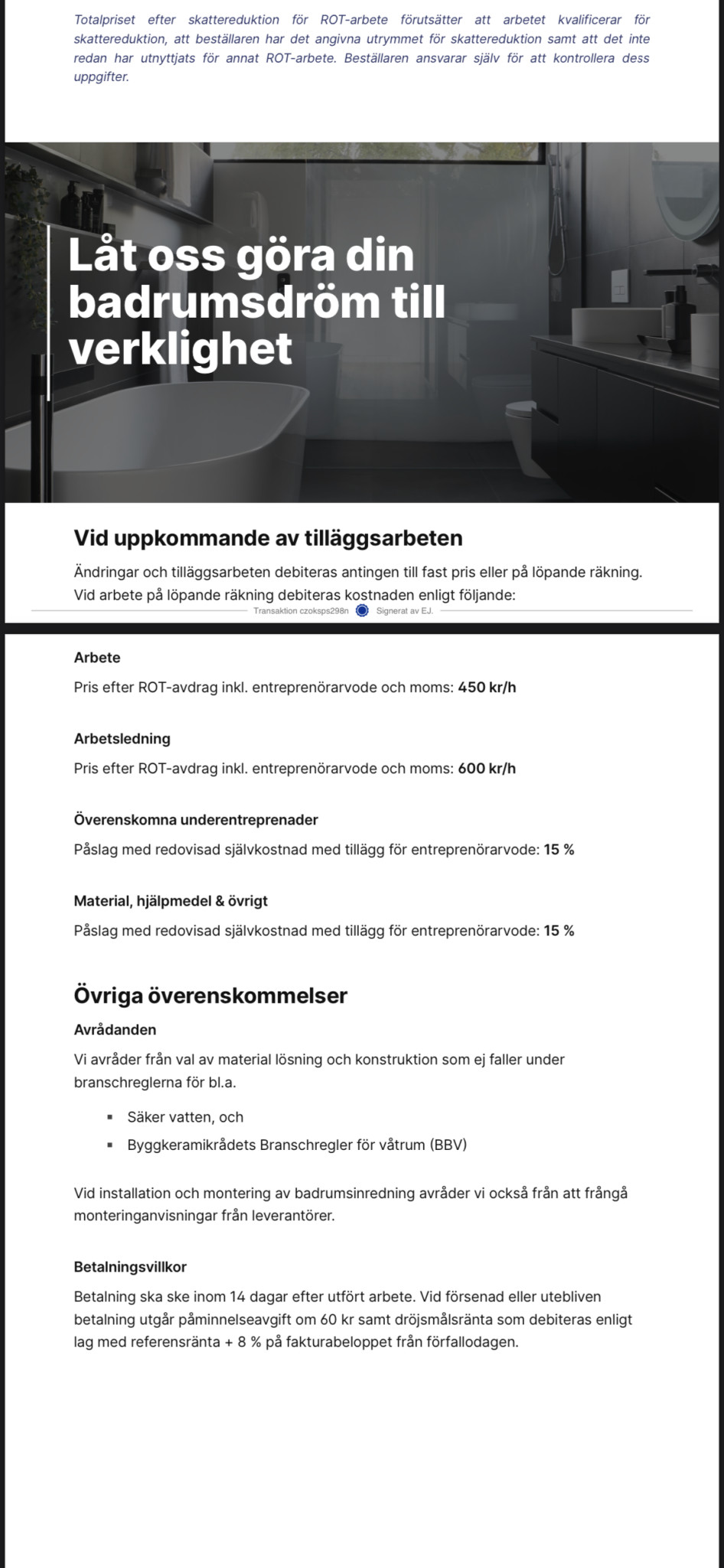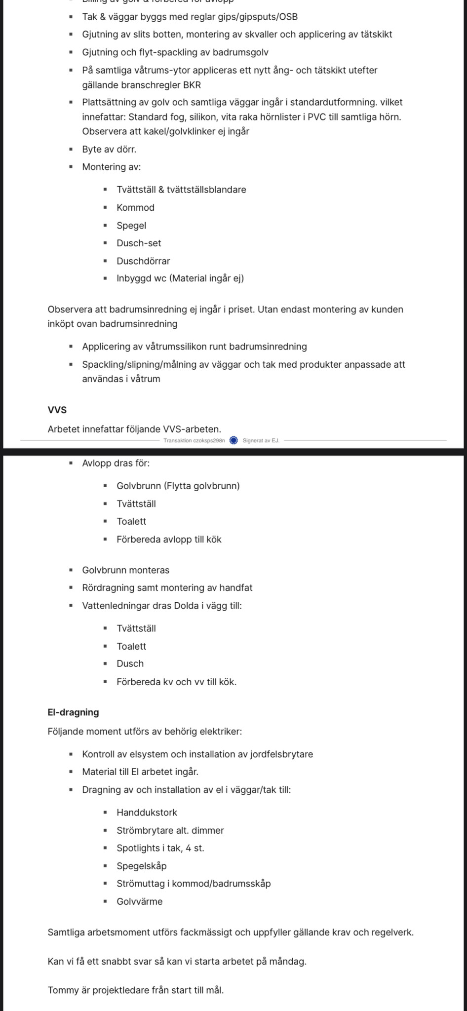 jag har anlitat ett företag för totalentreprenad av mitt badrum. Vi har skrivit ett bra och tydligt avtal.