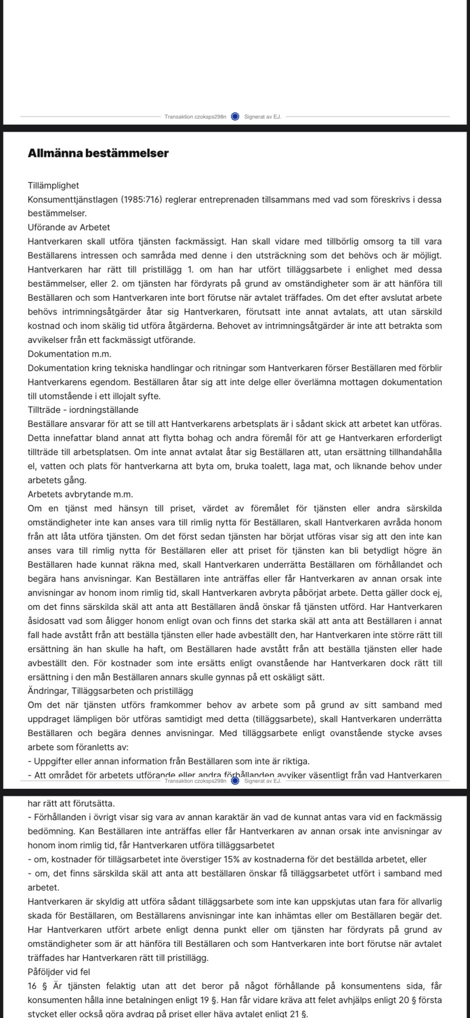Bra poäng! Här kommer en del av avtalet med överstrukna uppgifter och utan pris samt de sista sidorna kring konsumentinformation.