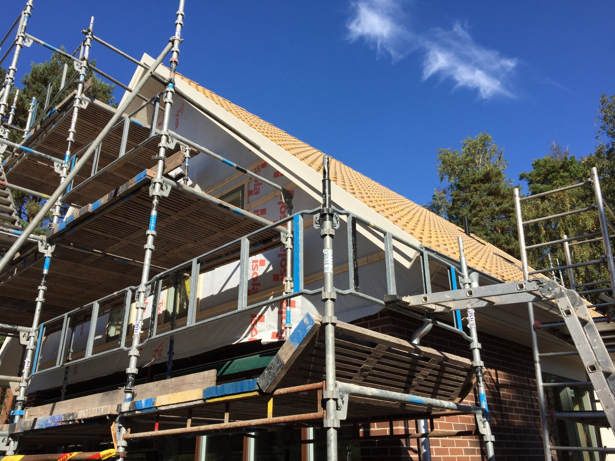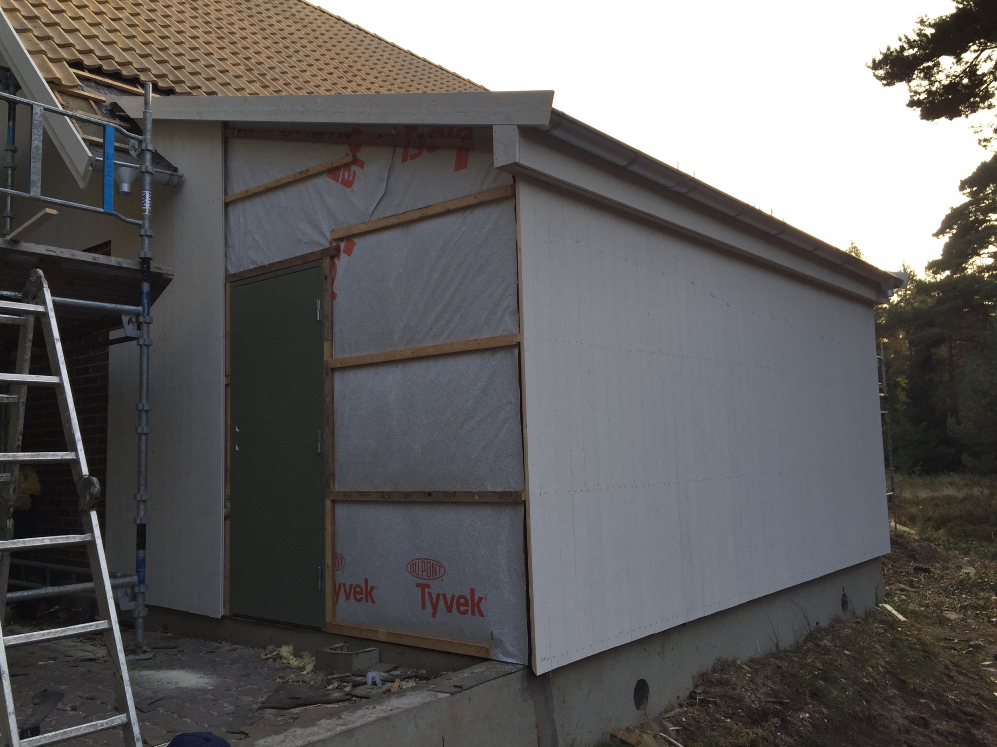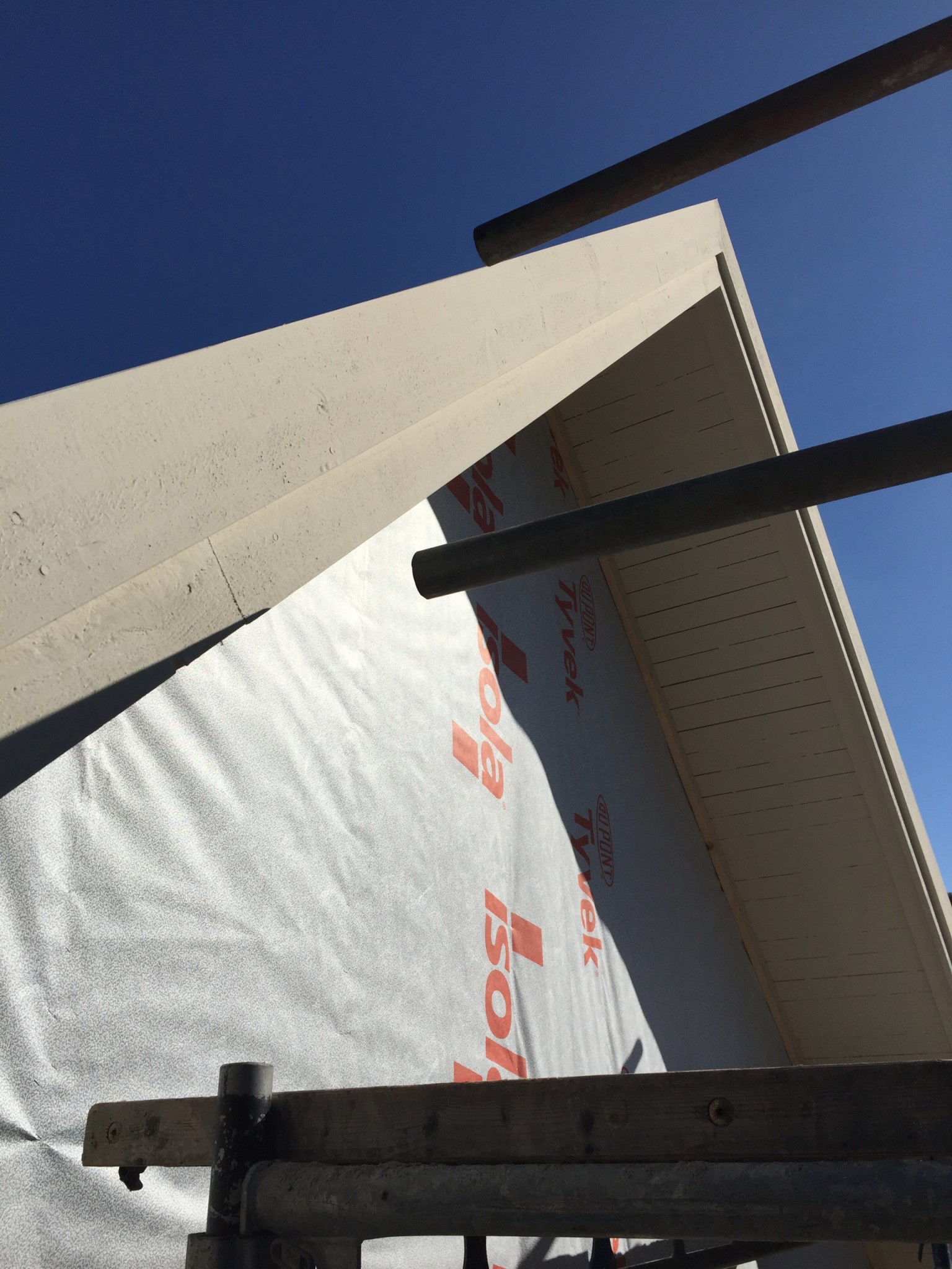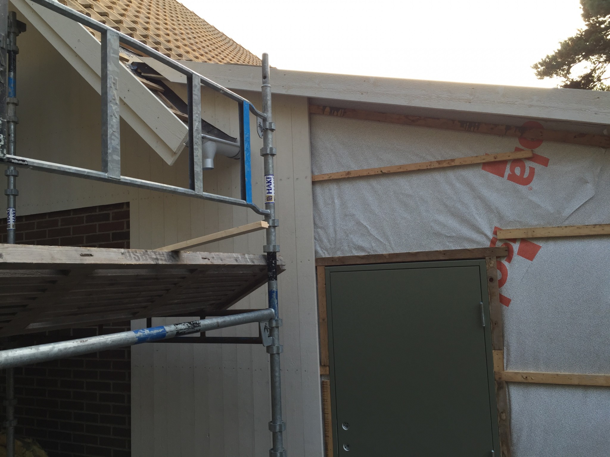 Nya vindskivor på plats och "undersidan" av taket målat.