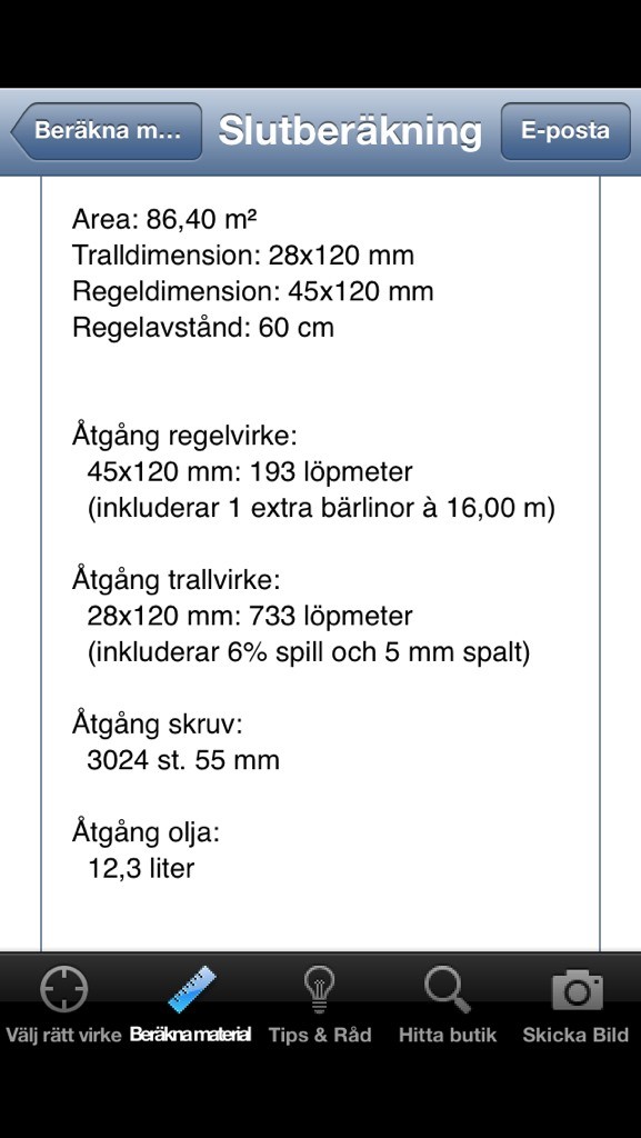 När det gäller själva trallen är det ju relativt enkelt, där vet jag ju hur många kvadrameter altan jag ska göra och därefter får man ju enkelt reda på hur mycket trall som behövs.