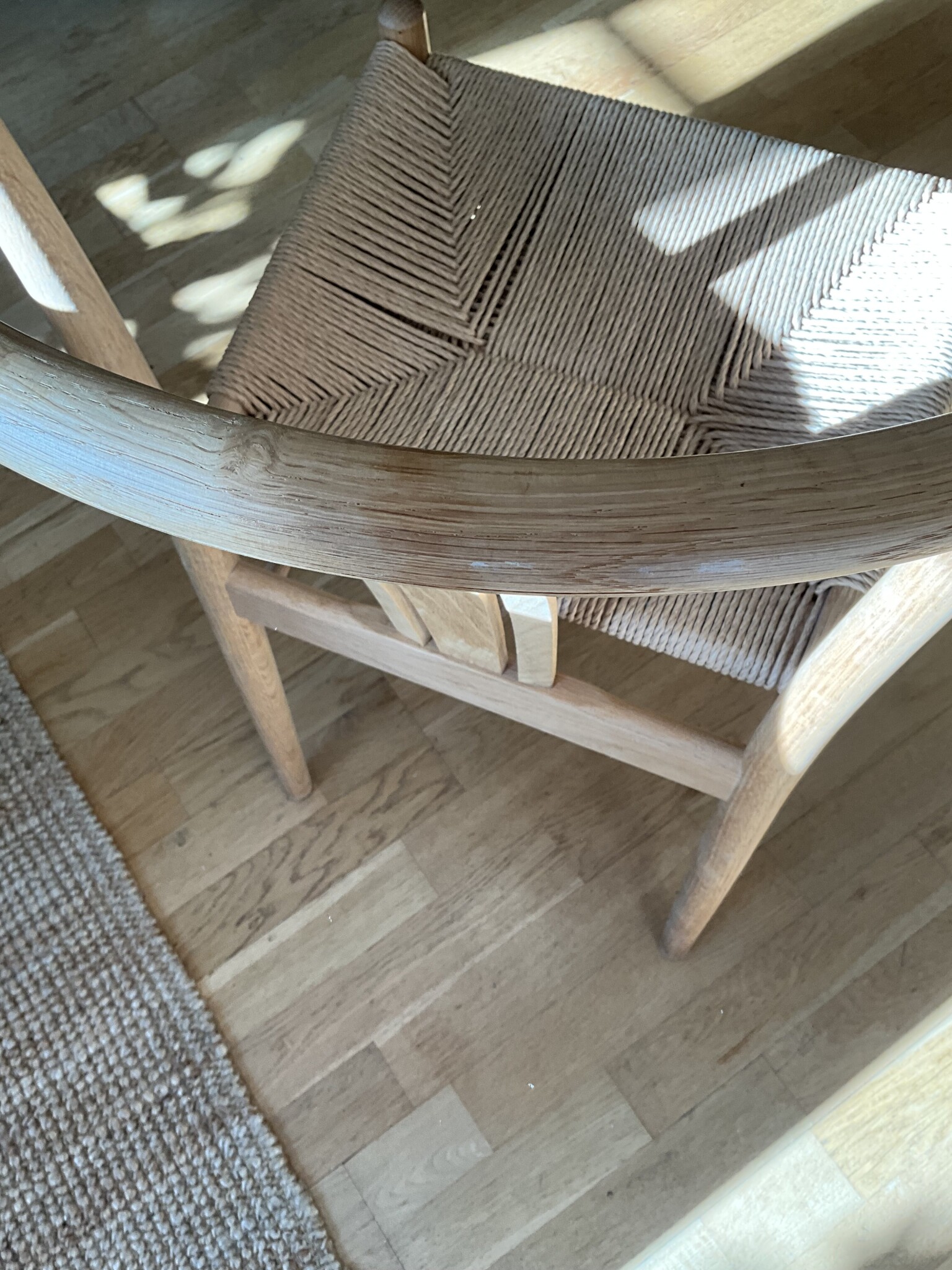 Ser ut att vara en dansk stol och de har rätt länge sålts med vitpigmenterad olja eller vitpigmenterad såpbehandling så det kan förklara färgen.Byggtok skrev: