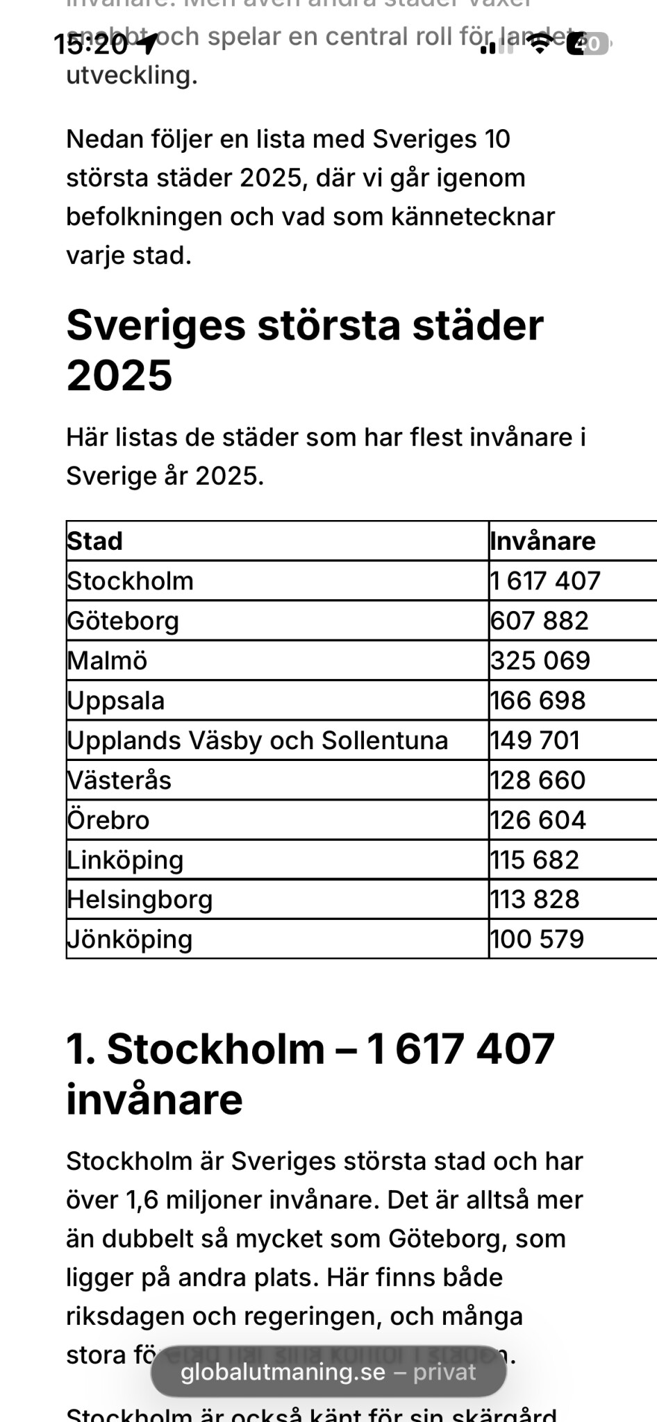 1,6 miljoner bor det i Stockolms stad. Så det är ca 14% numera. Rätt långt ifrån 25%