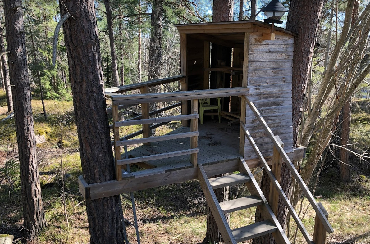 Är inte lite meningen med en trädkoja att den skall byggas av svajigt rivningsvirke och va smått livsfarlig att komma upp i.