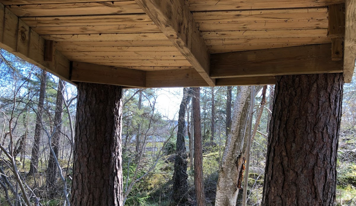 Tror det blir bra som du tänker, om platån är självbärande blir ju inte varje infästning så kritisk vilket är skönt eftersom träden rör på sig.