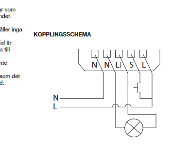 Så tändtråd från strömbrytaren går in på S, hmm verka behöva en separat L också, iofs inte så svårt att dra fram ifrån lampknappen