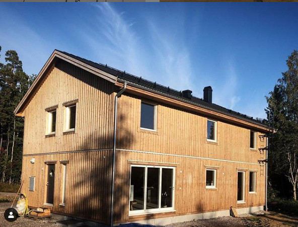 Vi har funderat lite på just det, ifall modellen lämpar sig i trärent eller vitriol. Det har byggts en hel del större Hjältevadshus i Västerbotten på sistone, där de valt trärent eller järnvitriol. Vi har åkt runt och kikat på en del och tycker det funkar, även om det inte är den sortens lad-funkis man kanske förknippar med vitriol. Jag har inga bilder jag tagit själv, men lägger upp några trärena fasader från instagram på den husmodell vi ska bygga.Hemmakatten skrev: