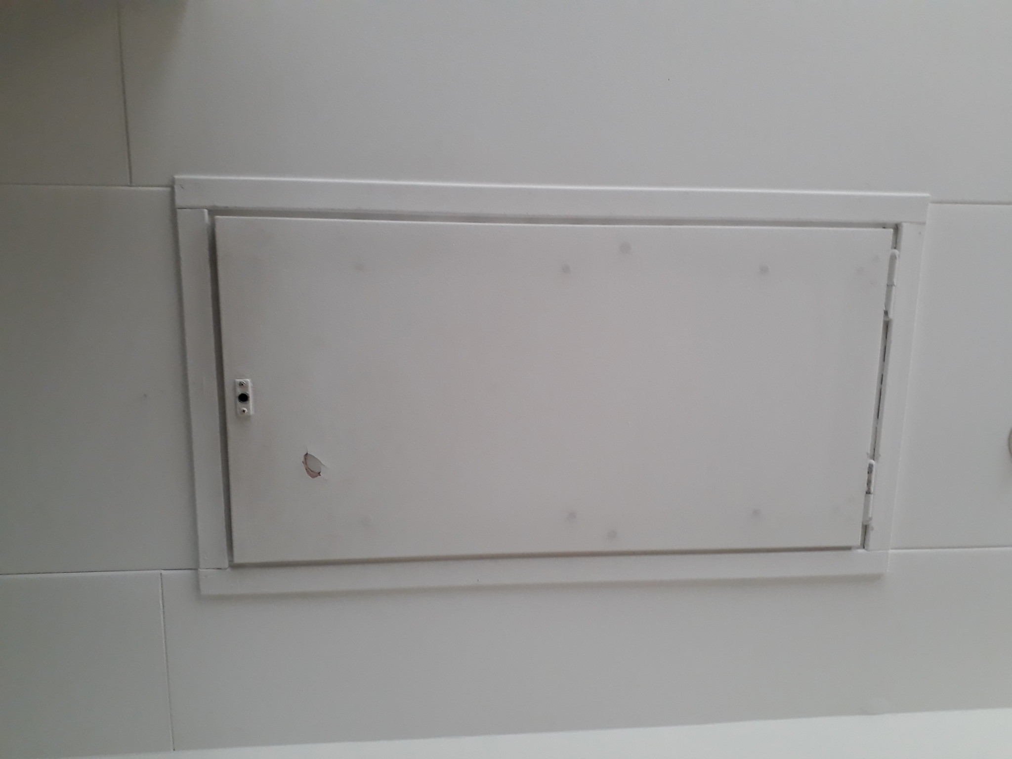 Annars är det nog så d-ligt att du får bryta dig in. Ta bort listerna och tigersåga av infästningarna så kommer hela luckan ner, se till att stämpa upp den så den inte kommer med en rasande fart.
