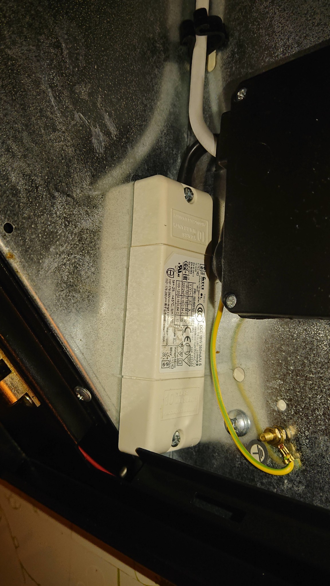 drivdonet lämnar 350mA ut och det tyder på att alla lampor (hur många finns det?) är seriekopplade, och då skulle det kunna vara en ljuskälla som packat ihop och då kan strömmen brytas så att alla andra ljuskällor i slingan slocknar samtidigt...