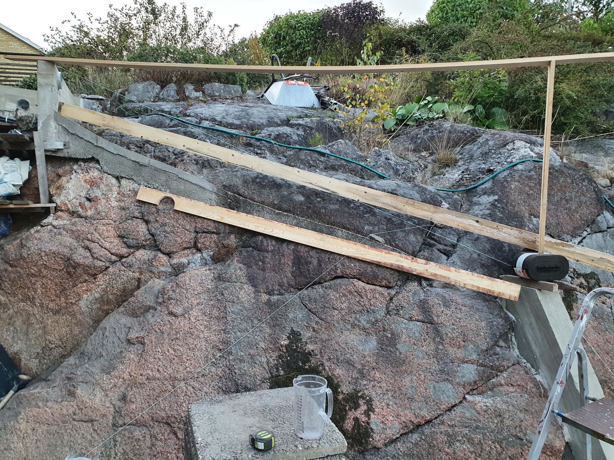 Skall gjuta sista betongfoten på berget nu i helgen tänkte jag och uppe på den kommer trästommen.