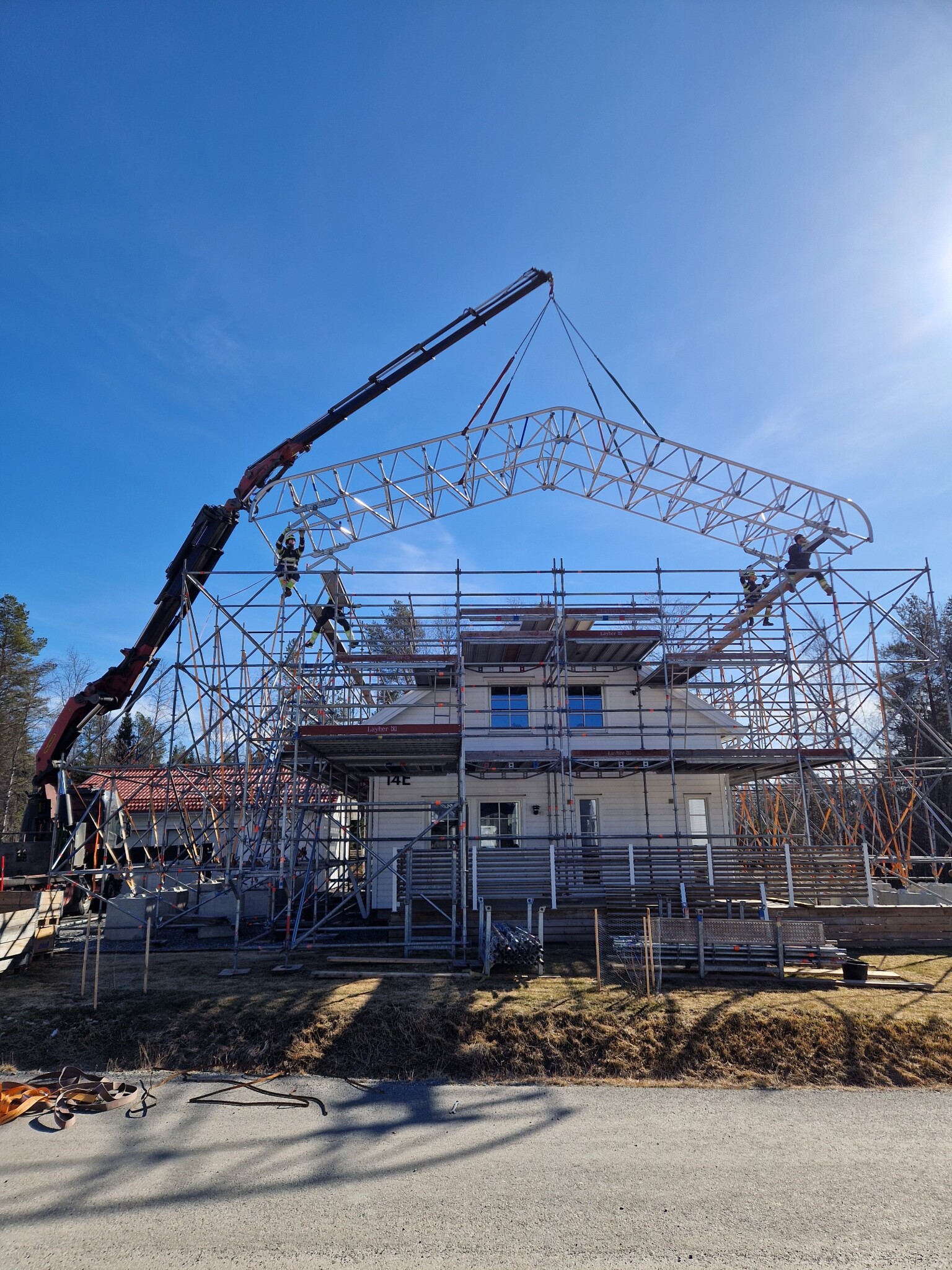 Första våren efter inflyttning märkte vi hur betongpannorna sprack vid snöraskydden och smältvattnet rann på undertaket. Fick till svar av Smålandsvillan att jag måste skotta taket. Bor i norra Sverige och blev stött av svaret eftersom jag aldrig hört talas om att man ska behöva skotta taket på ett nytt hus tidigare. Började därför att kontrollera hur infästning av snöraskydden såg ut. Konstaterade att inget snöraskydd var korrekt monterat mot ritning samt att fel bärläktsdimension använts (45x45mm och 34x70mm istället för 45x70 som det ska vara). Tog därför kontakt med en takläggare som fick komma och kolla på taket. Det upptäcktes då fler och allvarligare fel, rekommendationen blev att kontakta en jurist och konstruktör/ besiktningsman. Jaha kul med nytt och bekymmersfritt hus!!