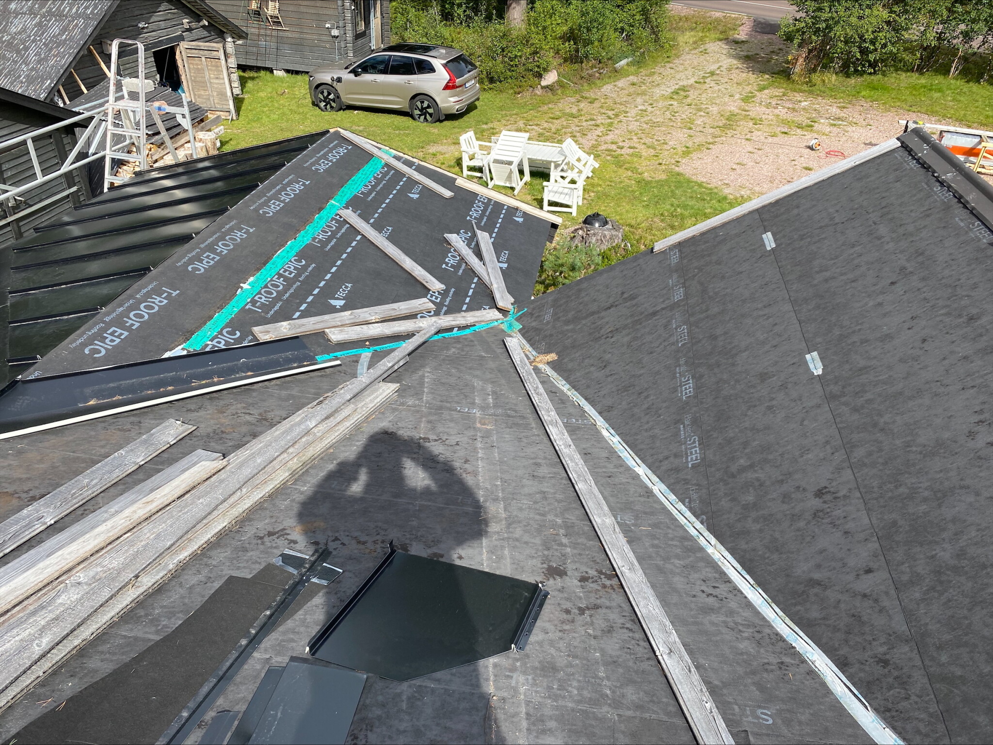 Har bockat/falsat ihop nock plåten, så den sitter redan uppe, eftersom det blev många ränndalar på utbygger så får vi klippa och bocka i stort sett alla plåtar då detta är falsat tak. dock ett klick tak. Så jag skulle behöva få lite tips på avslutet på ränndalen.F fribygg skrev:
