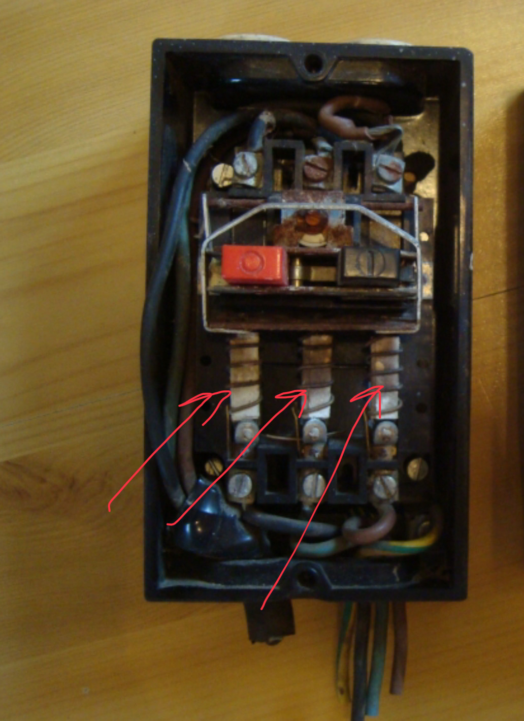 Det ingen av skribenterna i tråden har reflekterat över är att motorskyddet är trepoligt medans pumpen är ansluten i en tvåplog brytare.