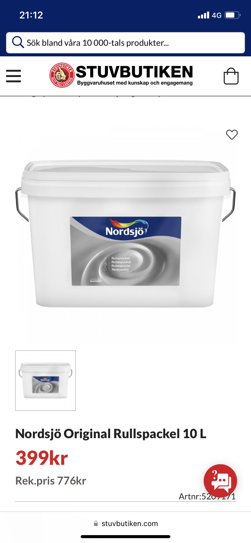 Beställde en tvåhandsbredspackel (60cm) och en syntetroller för rullspackling, båda från samma märke. Rullspacklet blev Nordsjö original rullspackel.