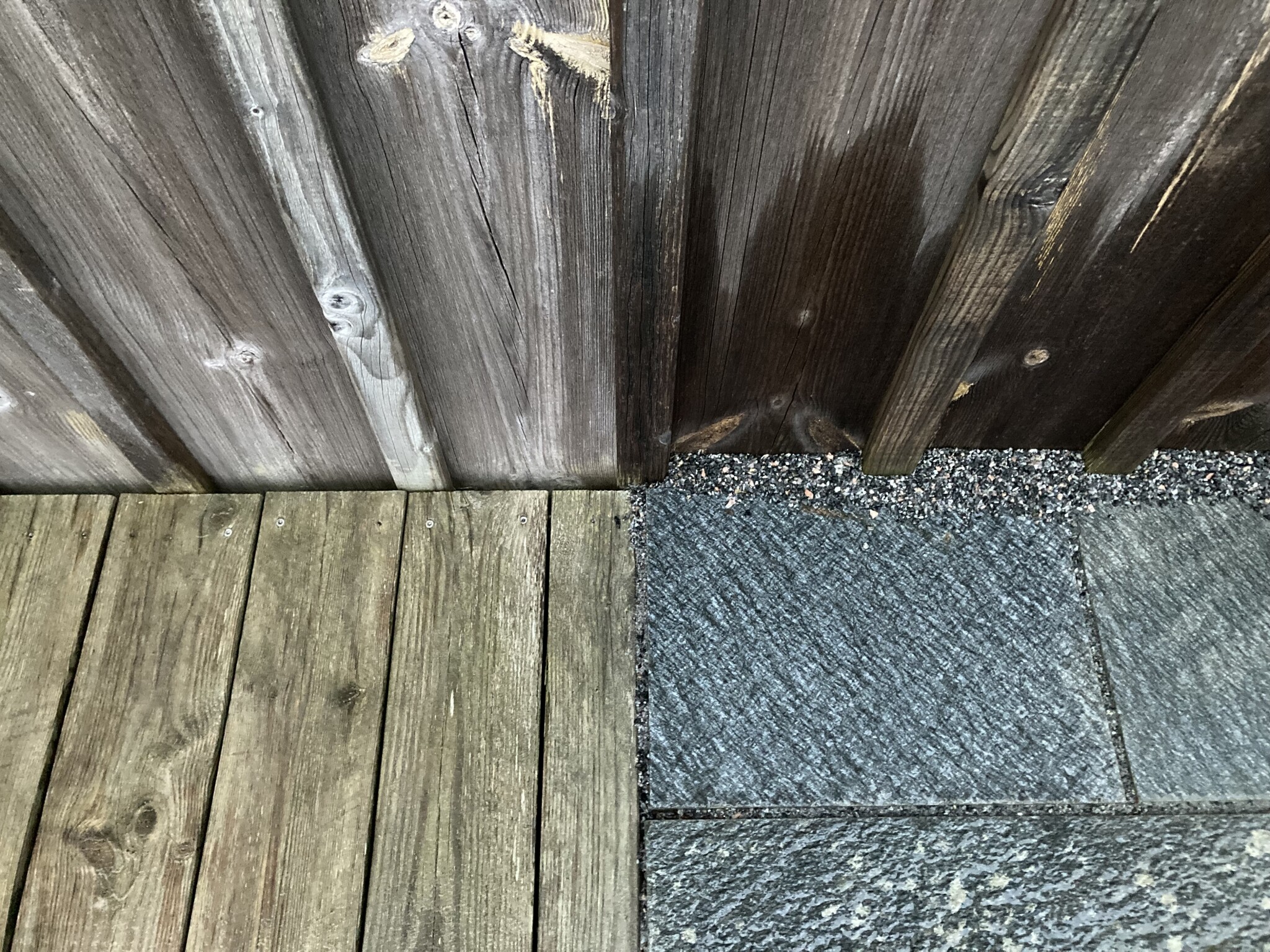 En bekants stuga har fått en gammal stenläggning omlagd då plattorna lossnat och spruckit i fogar etc. Vid omläggningen har sättsanden (vet inte exakt vad det kallas) mellan plattorna även lagts direkt mot träpanelen. Jag tycker det verkar konstigt då fukt från sanden håller träpanelen fuktig längre. Finns det inte risk att fukt även fortsätter in mot syll etc?
