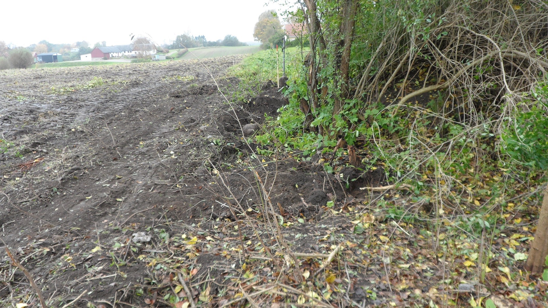 Lite svårt att svara på hur mycket sly/grenar som hängde in över åkern, som jag inte ens kan minnas att bonden brukar, då vi inte blev informerade och kunde gå ut och titta innan de tog bort det.