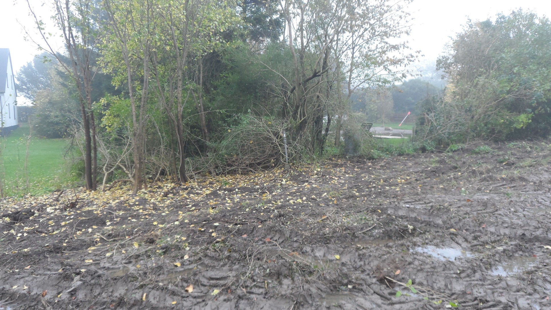 Bonden som röjde kapade ner allting som stod i tomtgränsen, grävde upp alla rötter som han ansåg inkräktade på hans mark och gick även in på föräldrarnas mark och sågade ner träd och grenar.