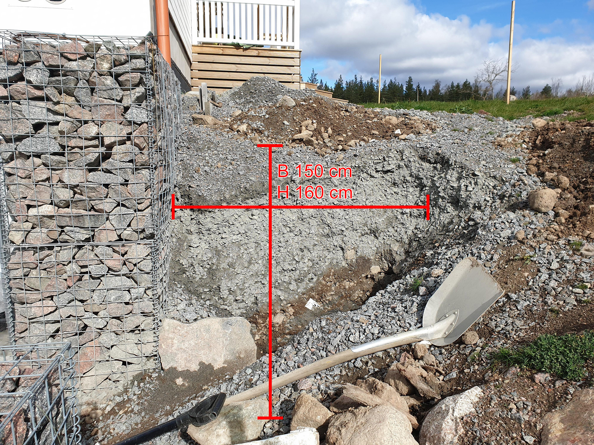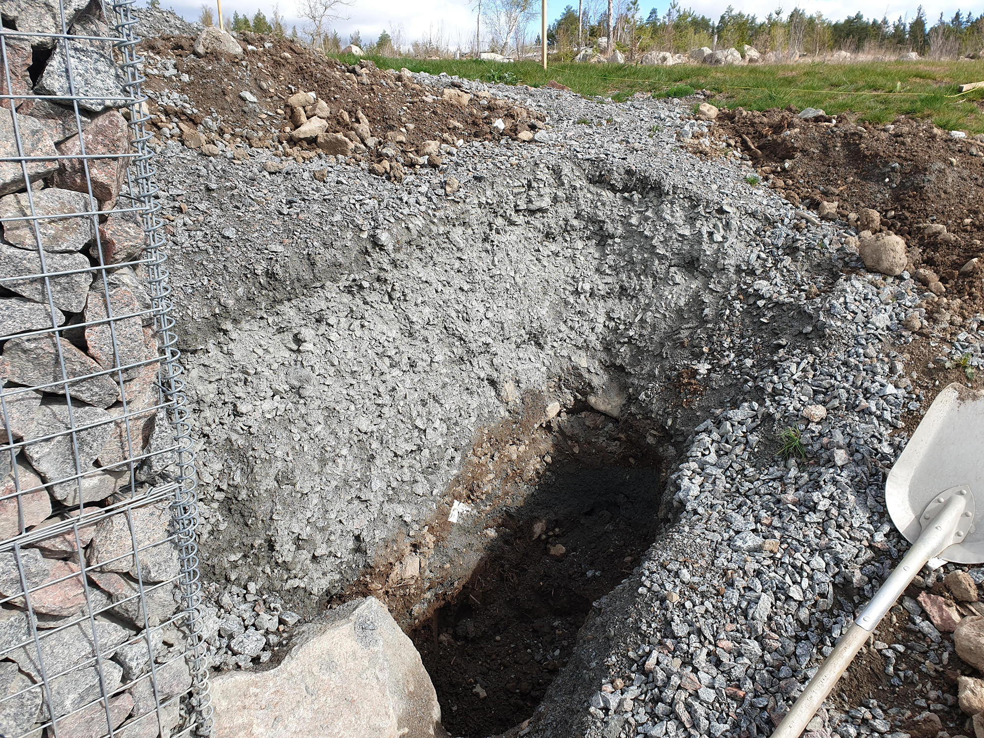 Idag är det uppfyllt med 0/32 mestadels och jord sista decimetrarna. Stenen längst ner till vänster tänkte jag låta ligga kvar.
