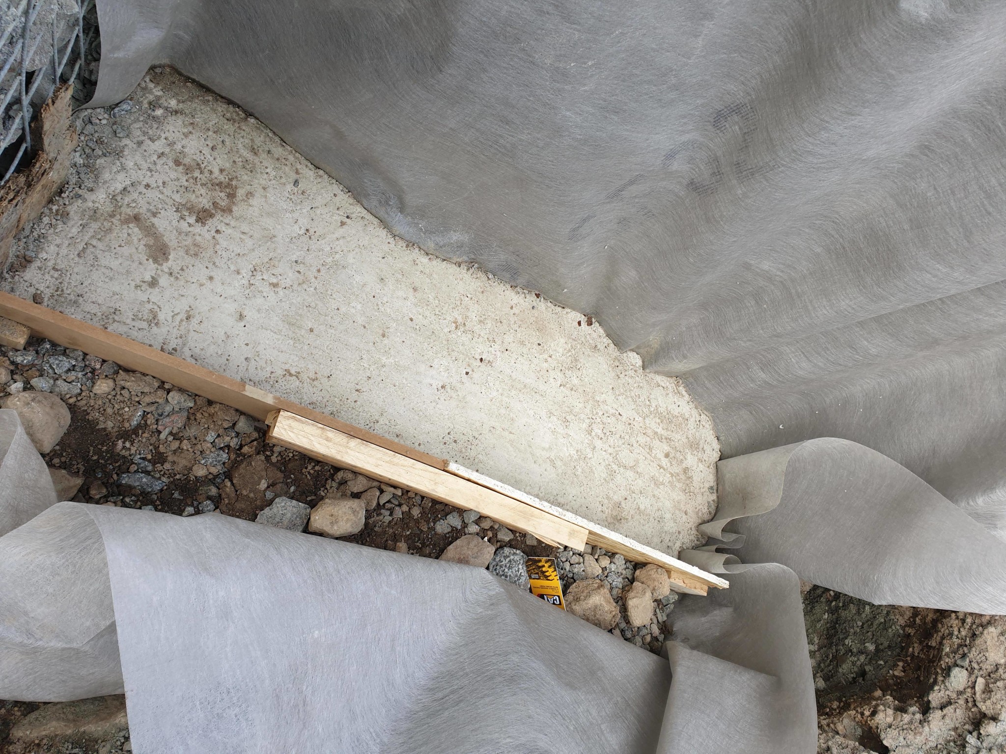 Tänkte läggas en dräneringsslang i botten där jorden är och sen fylla på med makadam där sidan är som högst.