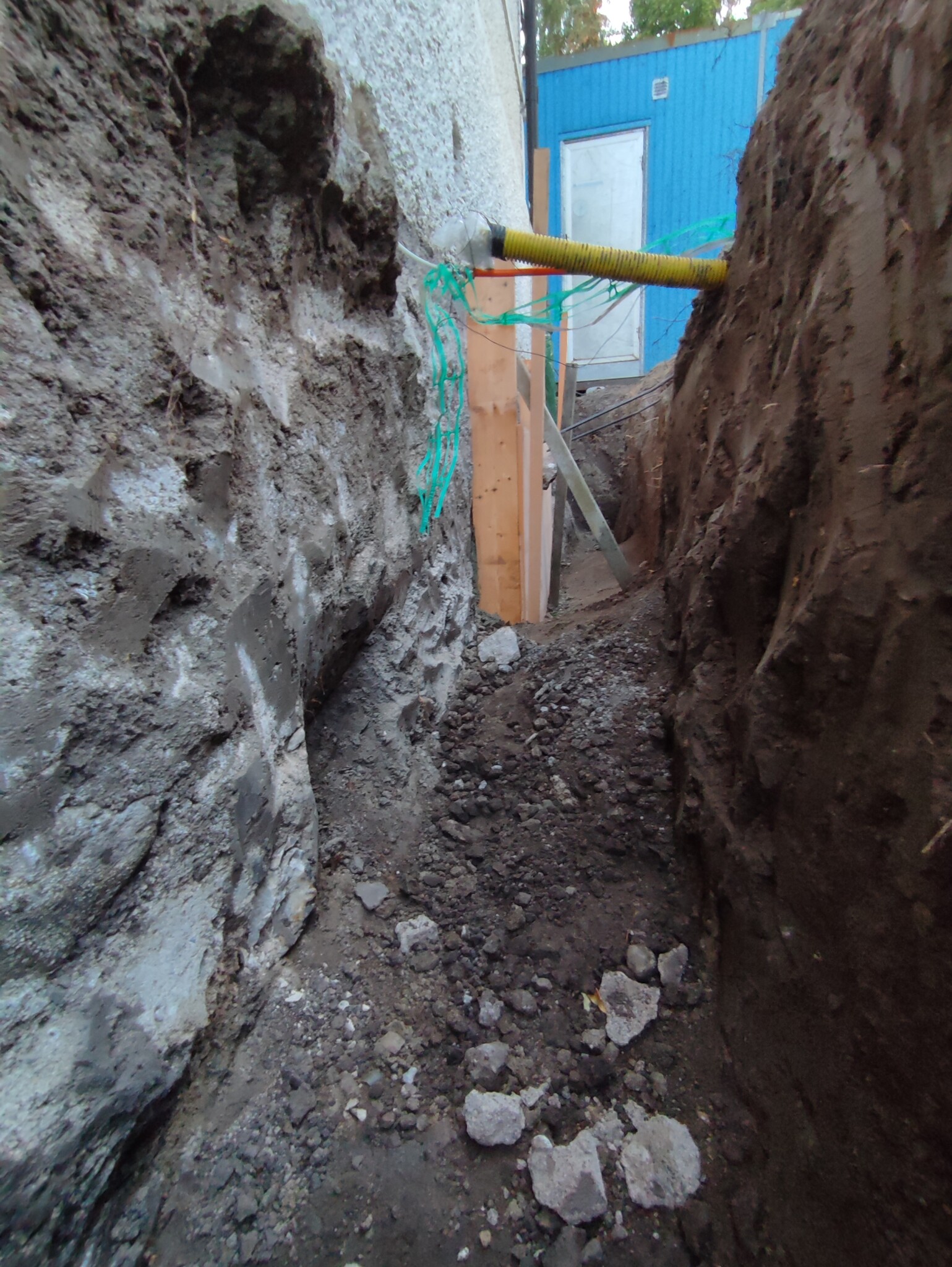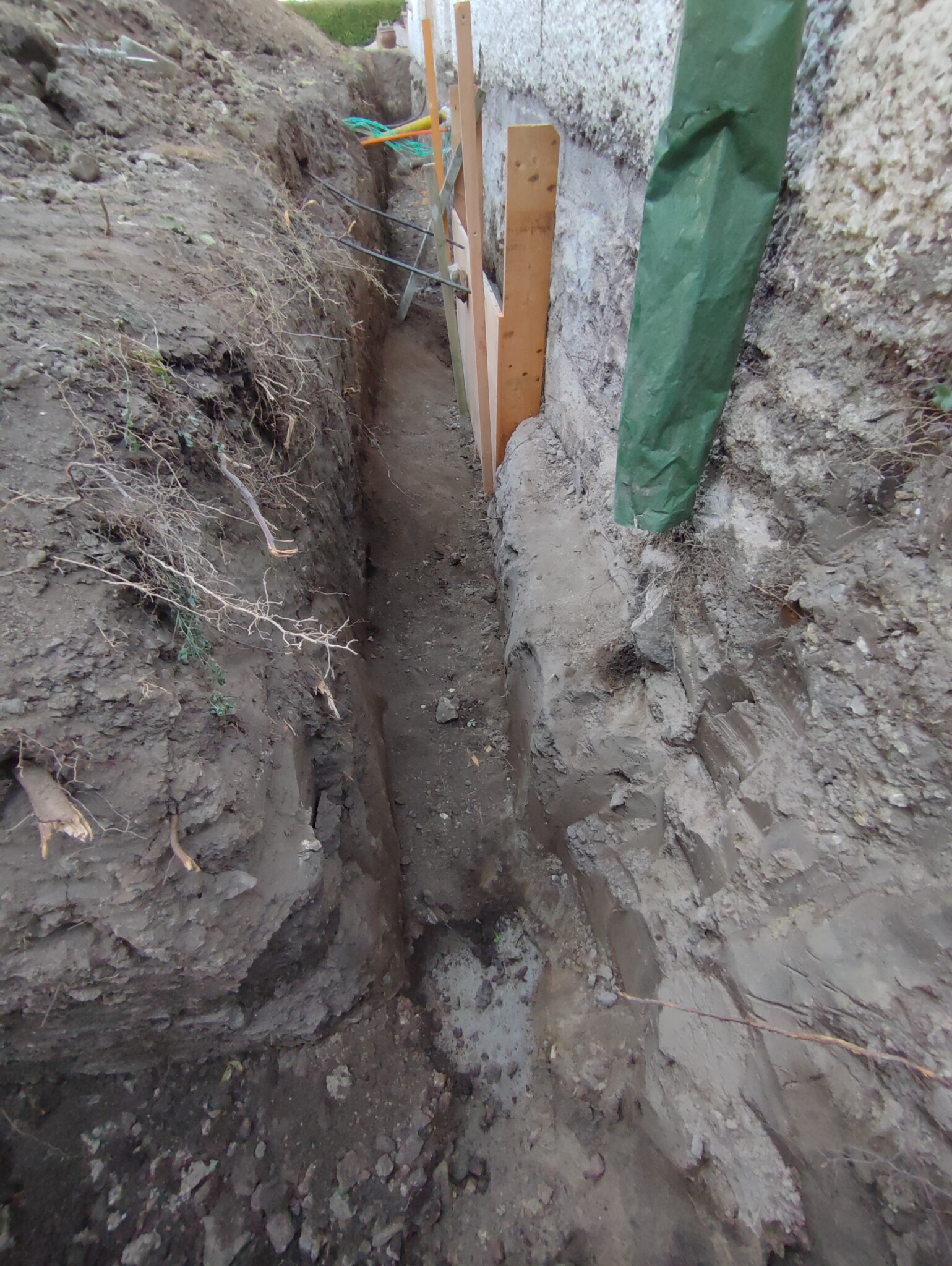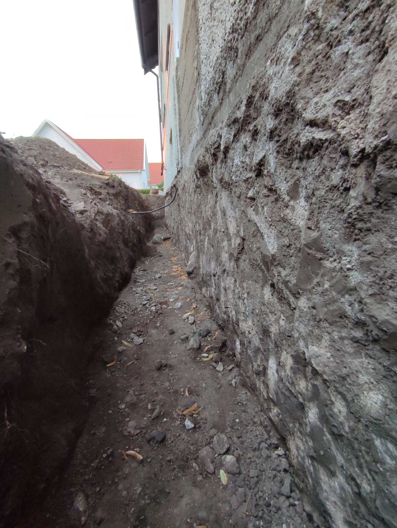 Frågan är nu och jag bör undergjuta resten av väggen som har undergjutits inifrån och ersätta dom yttre klackar av jord (extremt packad morän, har fått bila bort bitar då grävmaskinen ej får grepp)? Något säger mig att det är bättre att lämna så mycket befintlig packad jord som möjligt orörd. Några synpunkter/kommentarer/råd?