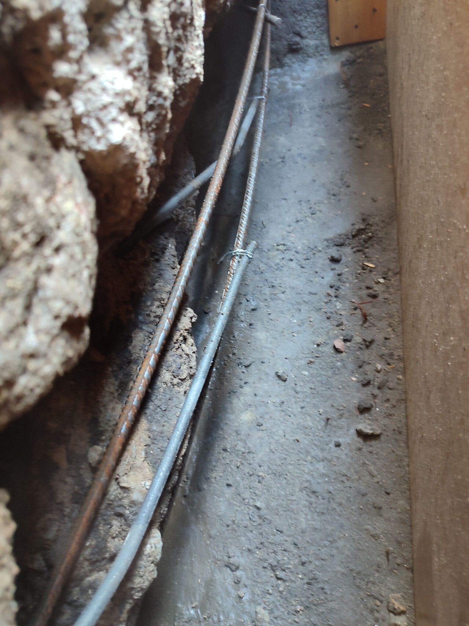 Frågan är nu och jag bör undergjuta resten av väggen som har undergjutits inifrån och ersätta dom yttre klackar av jord (extremt packad morän, har fått bila bort bitar då grävmaskinen ej får grepp)? Något säger mig att det är bättre att lämna så mycket befintlig packad jord som möjligt orörd. Några synpunkte