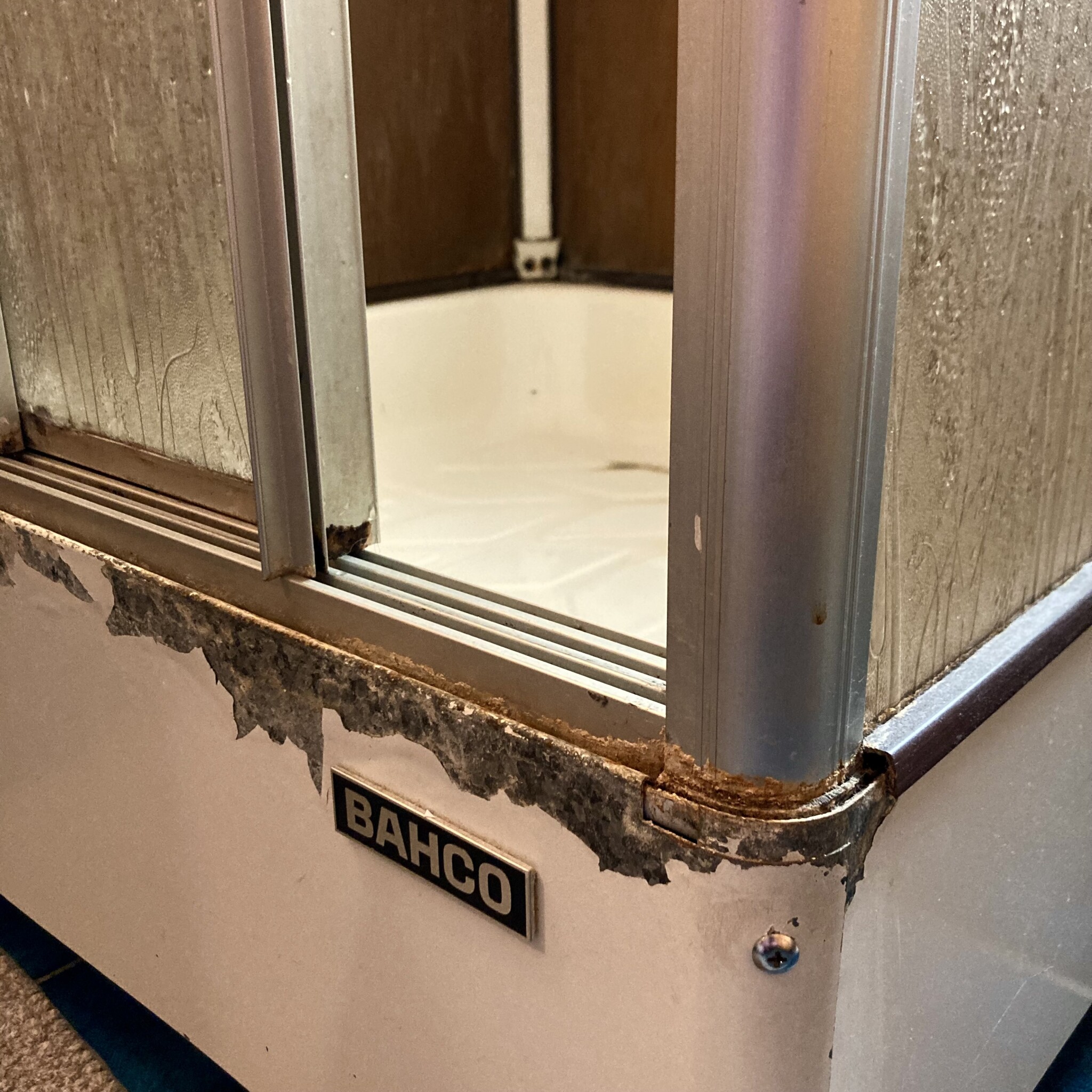 Sen kan man även ha oturen att ha en duschkabin från 80-talet 😄 Och den var värre på insidan.